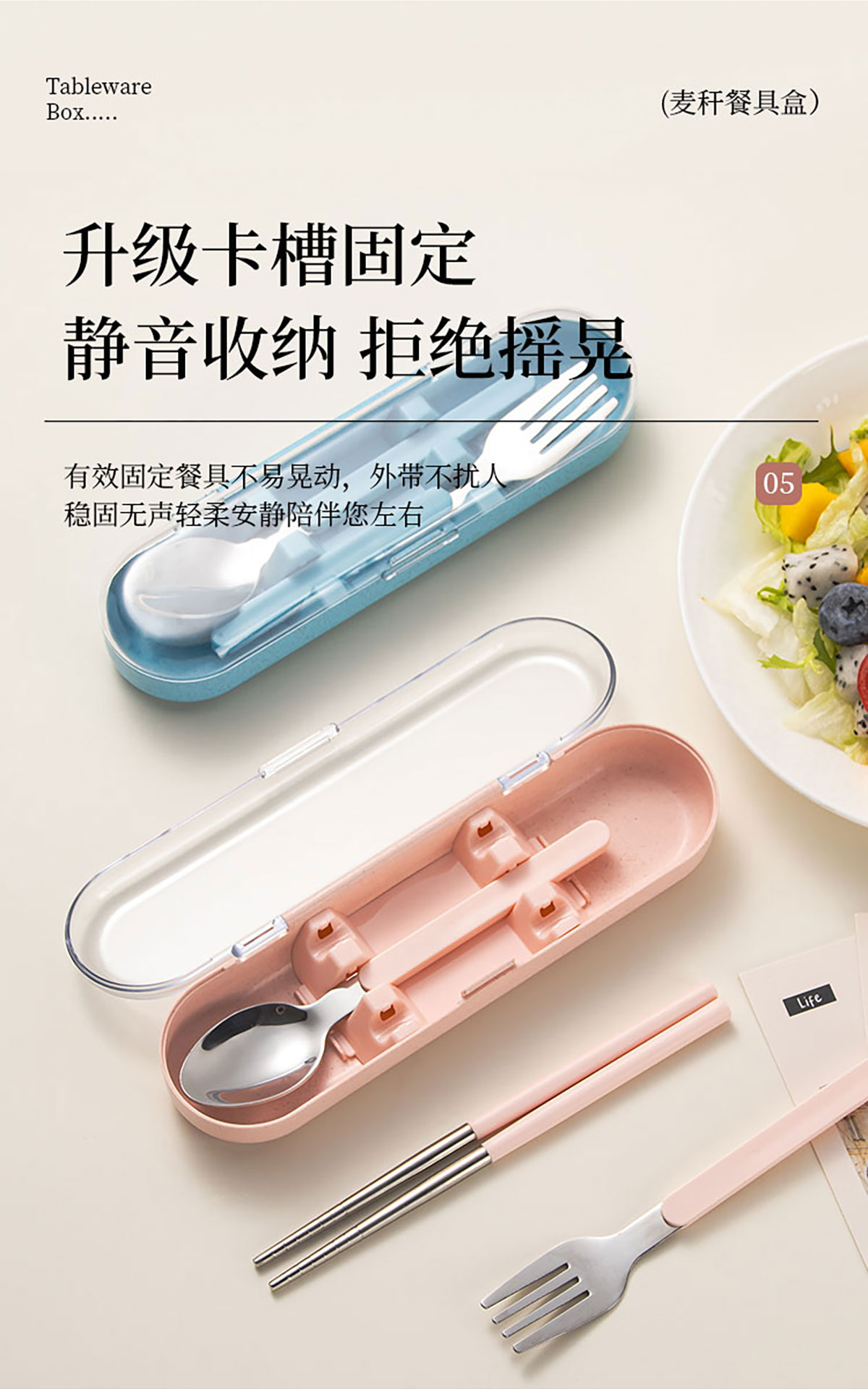 麥稈便攜不銹鋼餐具叉勺/筷勺兩件套