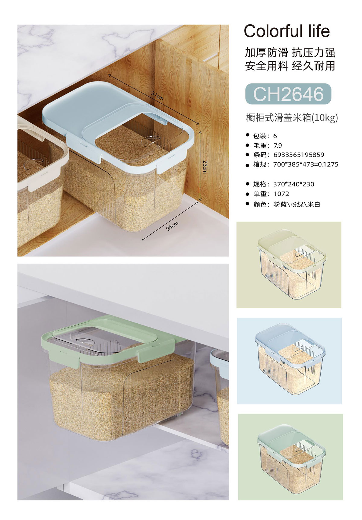 櫥柜式滑蓋米箱(10KG)
