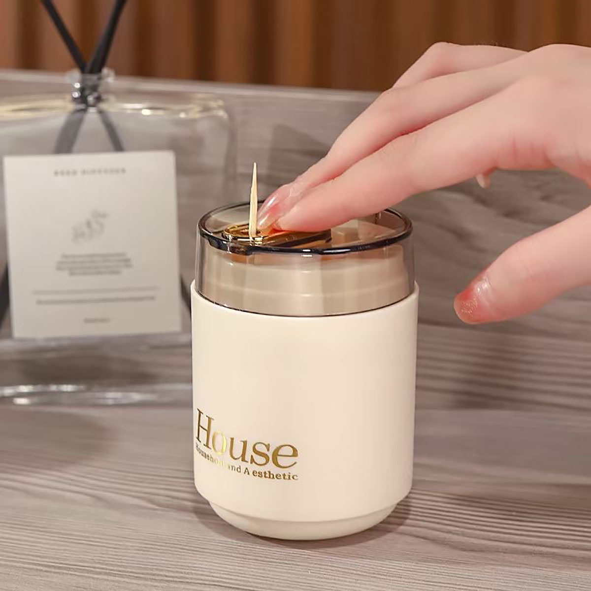 奶油風自動牙簽筒