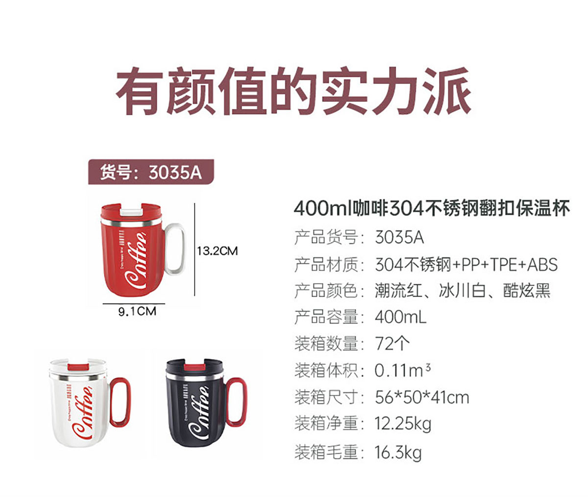 400ml咖啡304不銹鋼翻扣保溫杯(帶手柄)