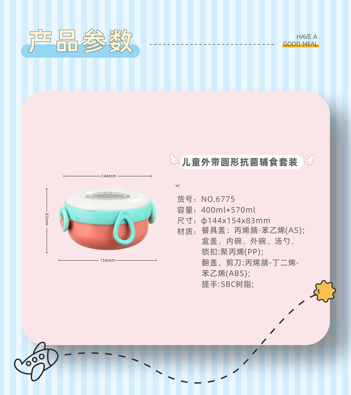兒童外帶圓形抗菌輔食碗