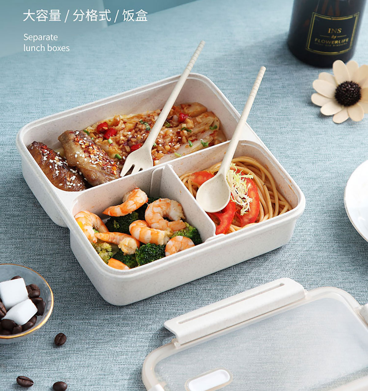 麥秸方形分格餐盒