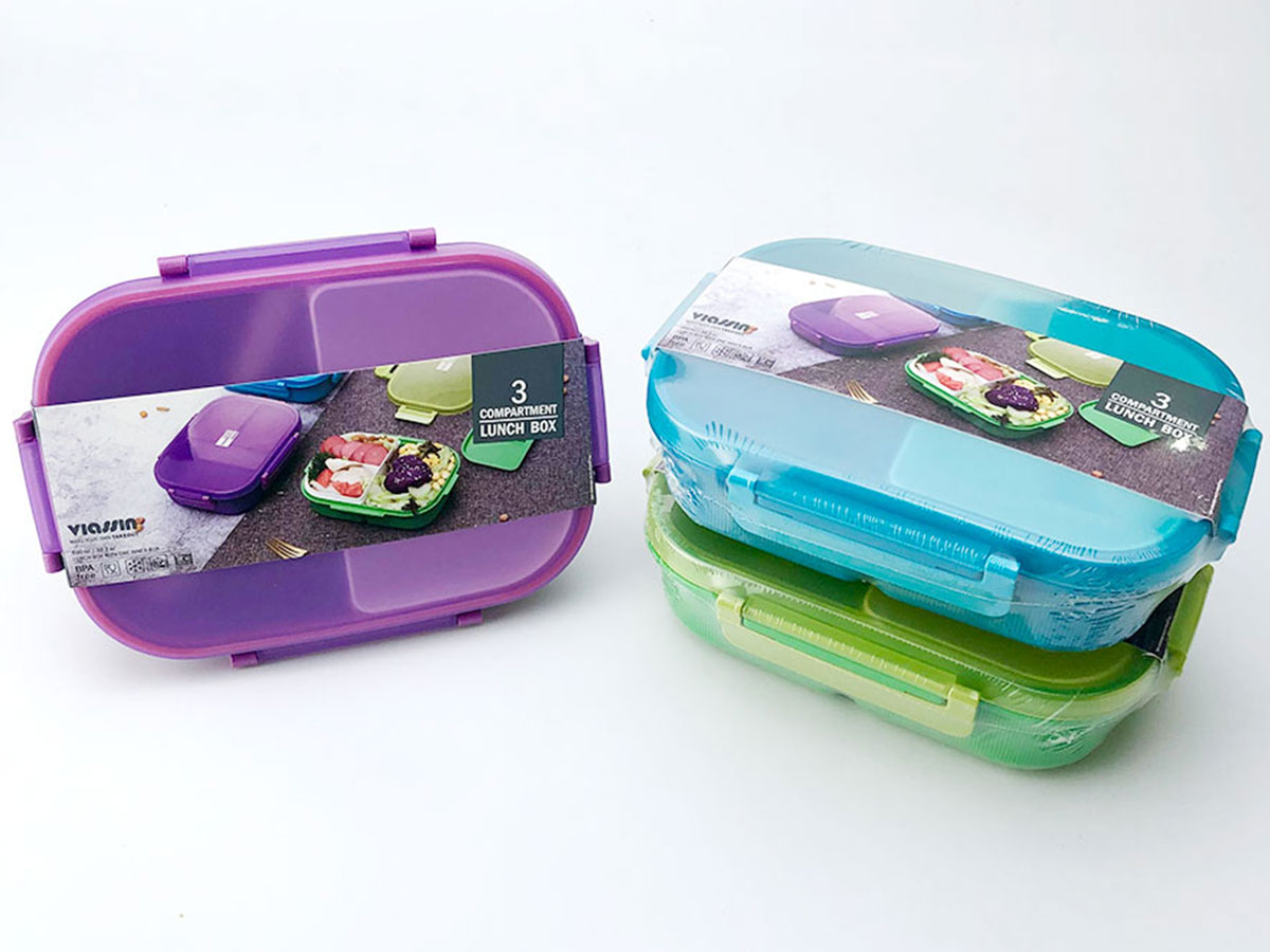 紋彩密封3格飯盒(長方形900ml)