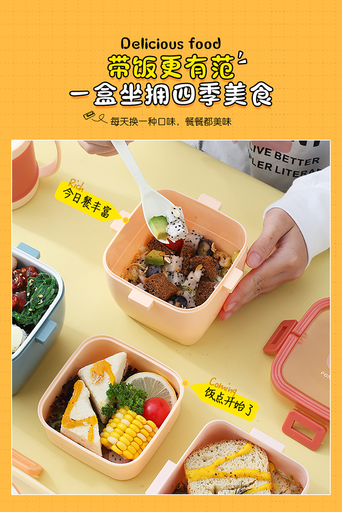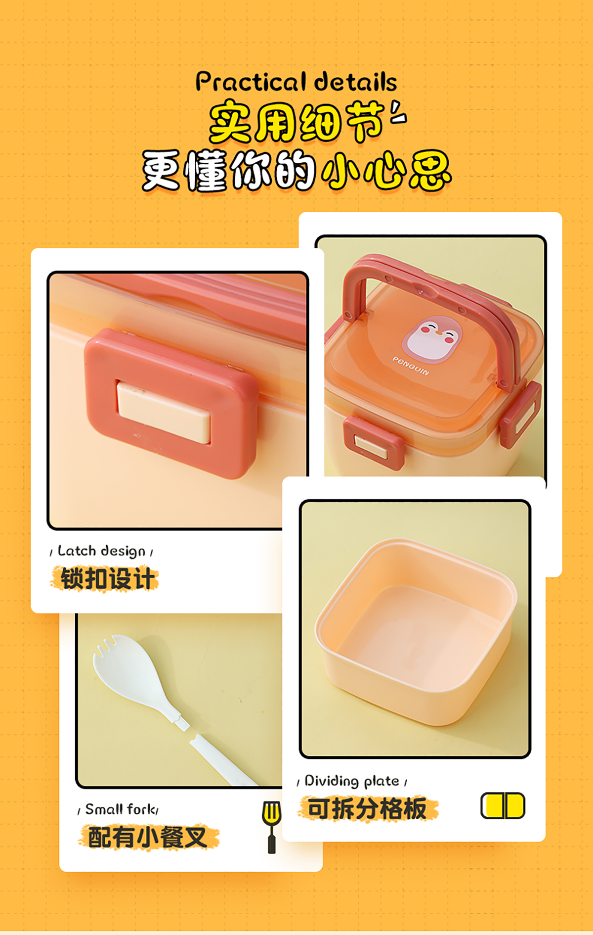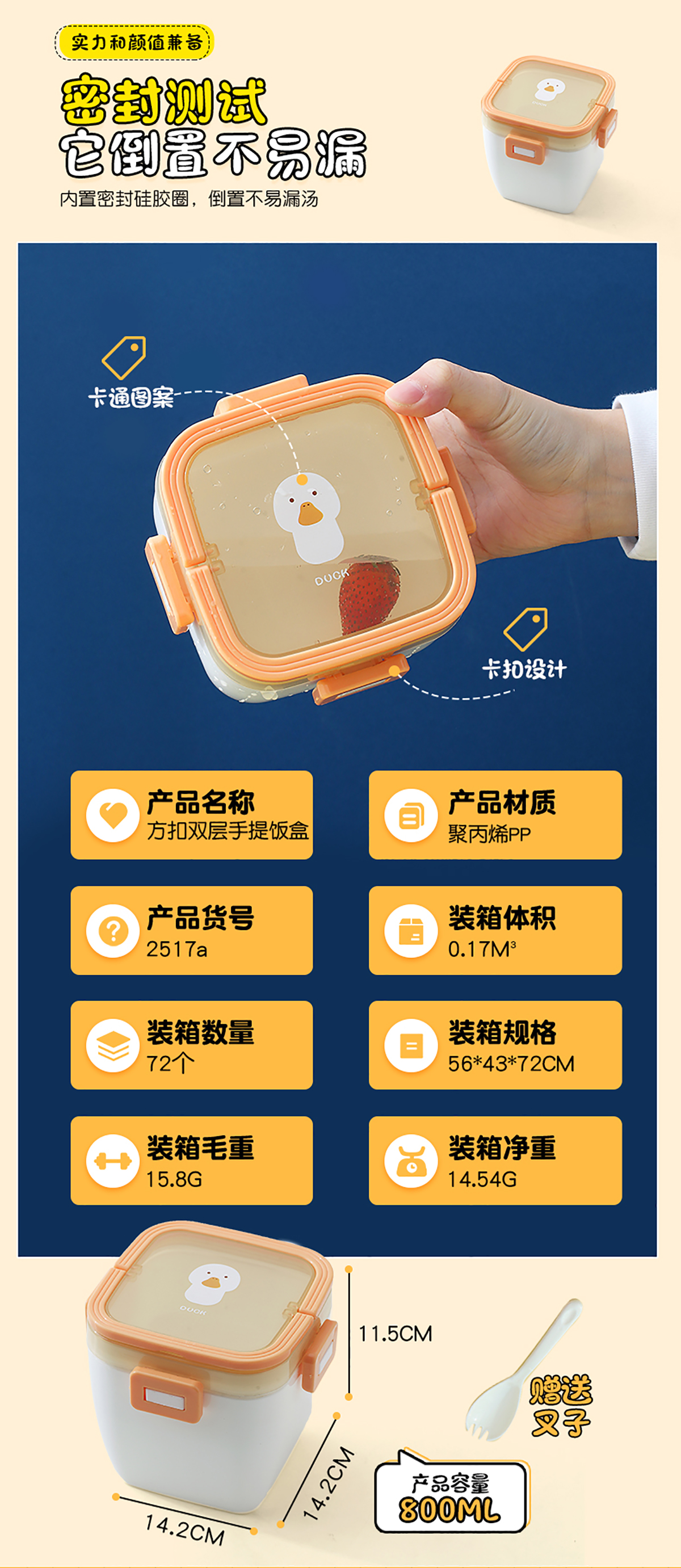 卡通方扣雙層手提飯盒800ml