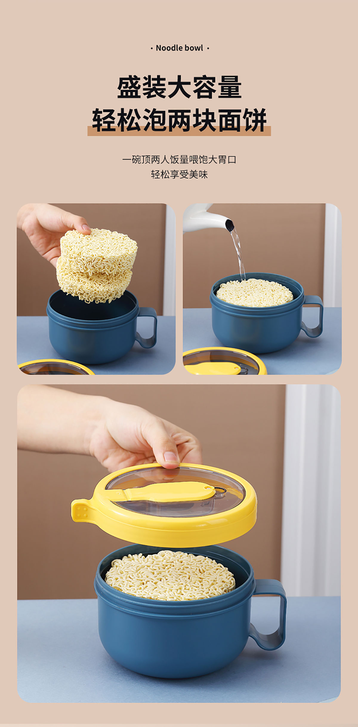 透明蓋塑料泡面碗850ml
