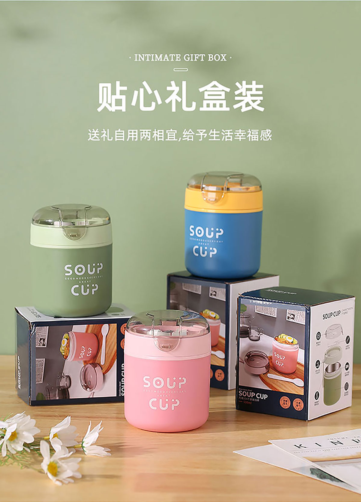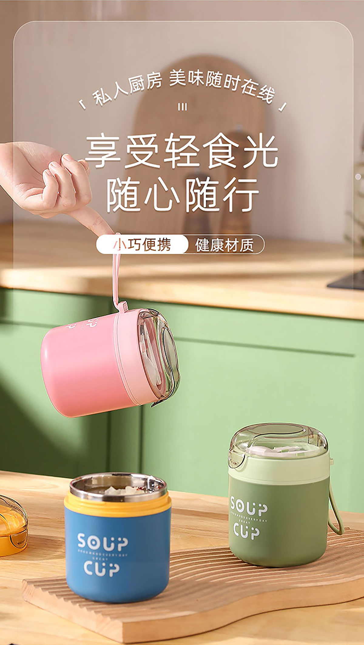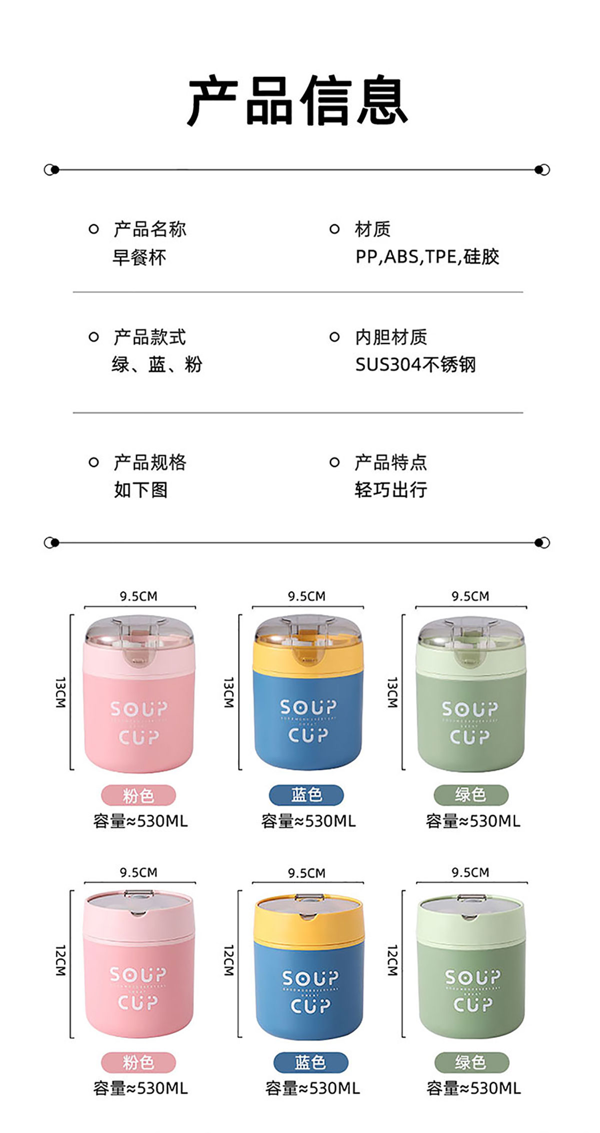 巧雅304不銹鋼湯杯530ml(高/平) 綠色/藍(lán)色/粉色