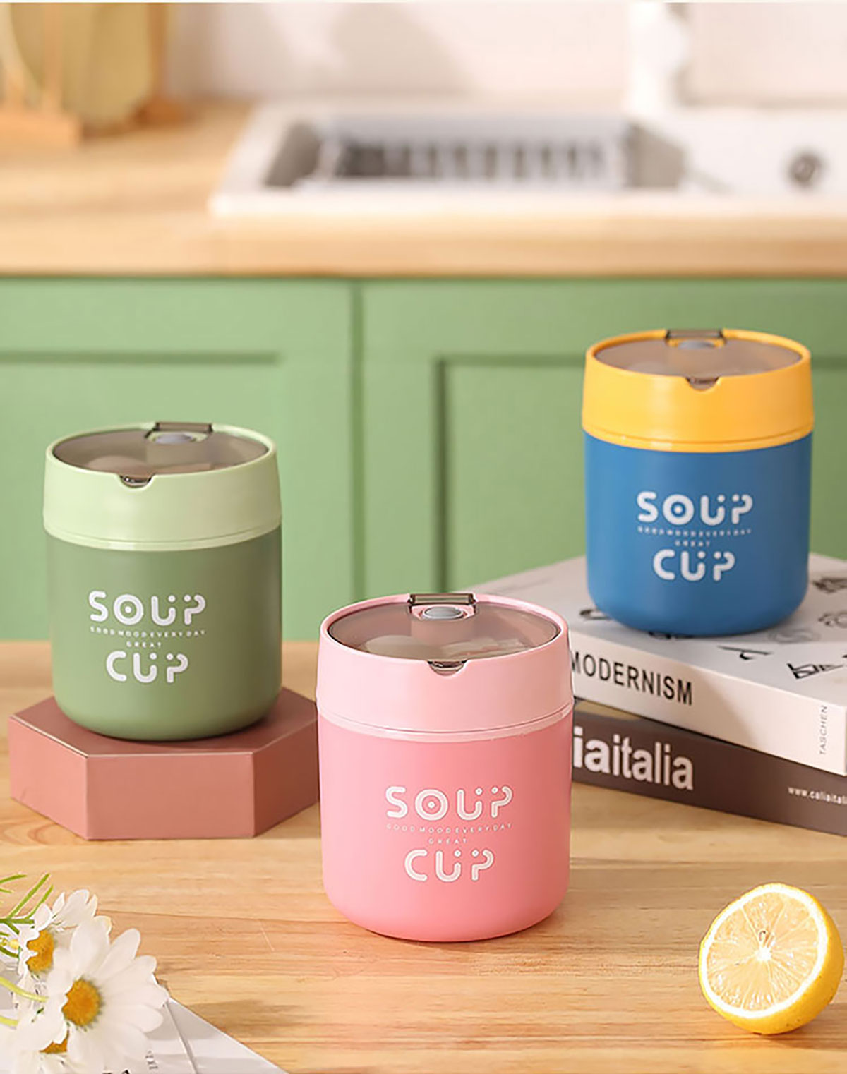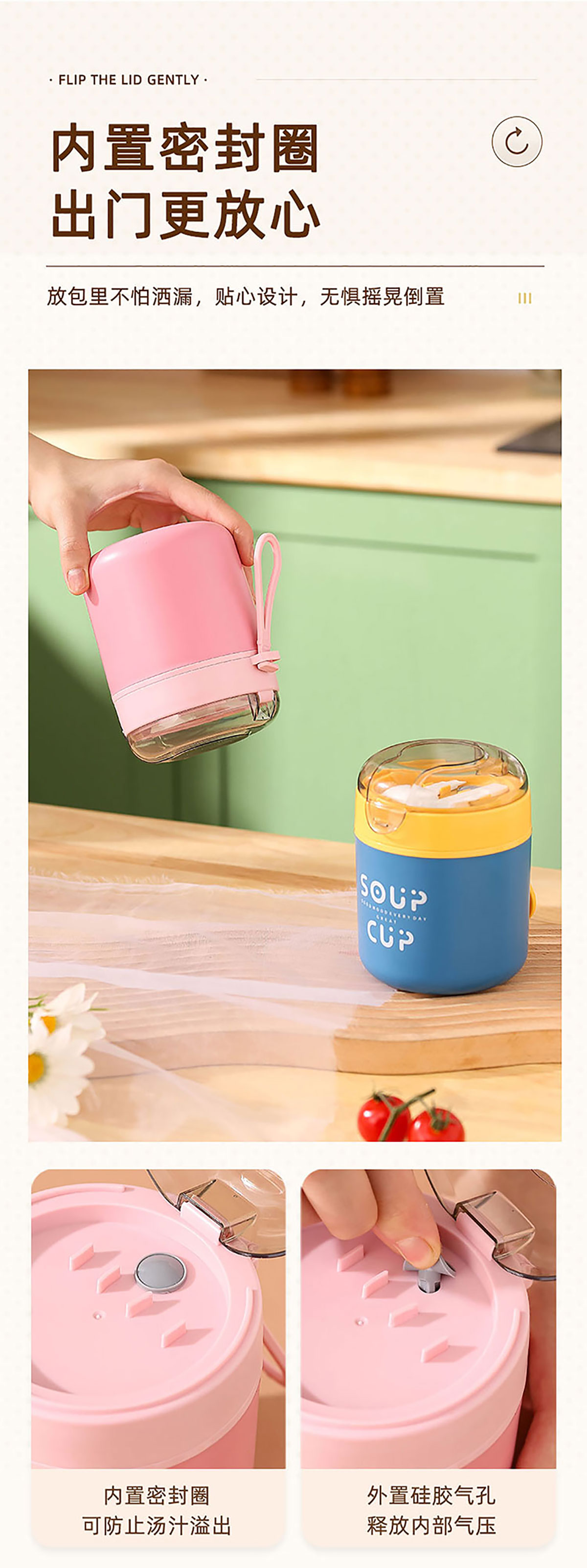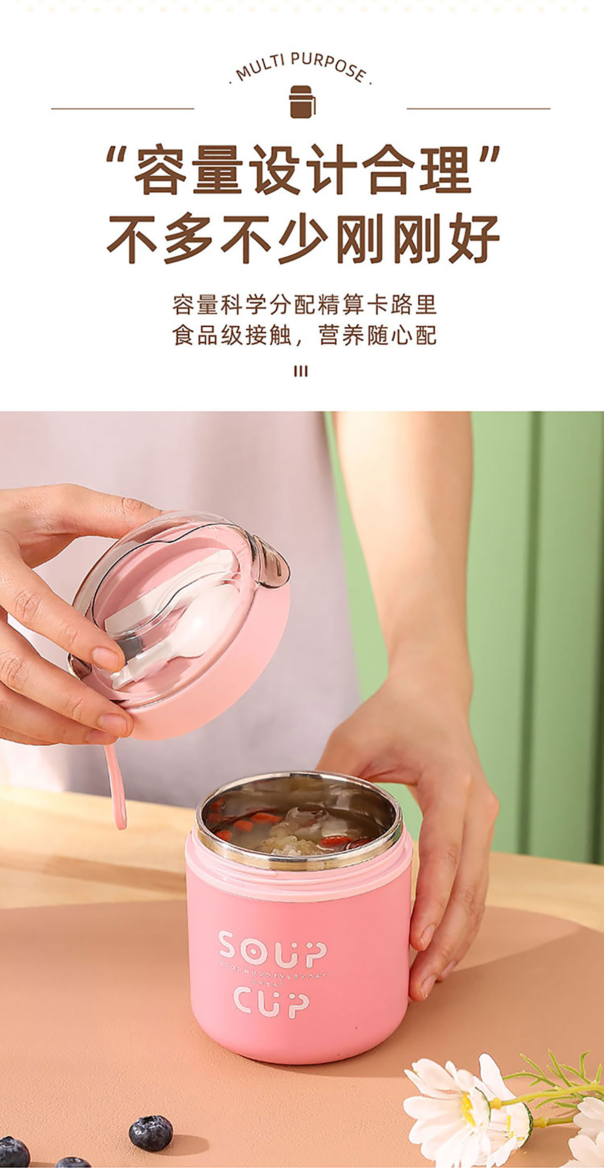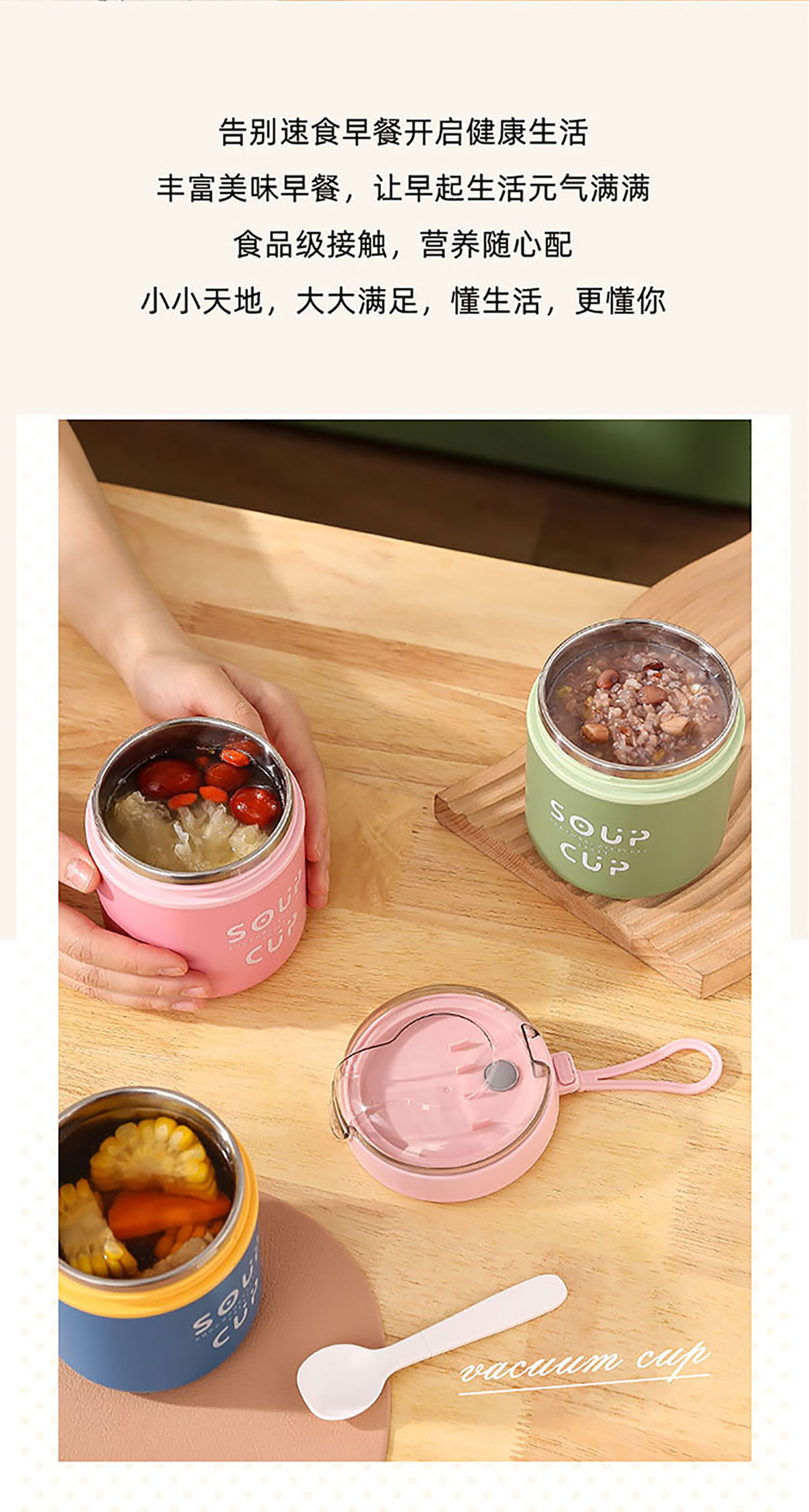 巧雅304不銹鋼湯杯530ml(高/平) 綠色/藍(lán)色/粉色