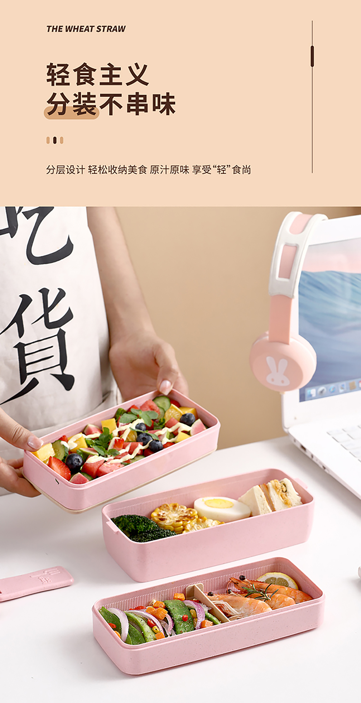 麥秸透明蓋雙層750ml/三層1000ml飯盒
