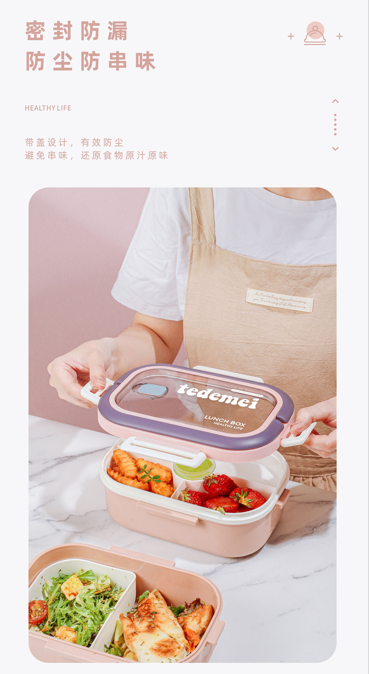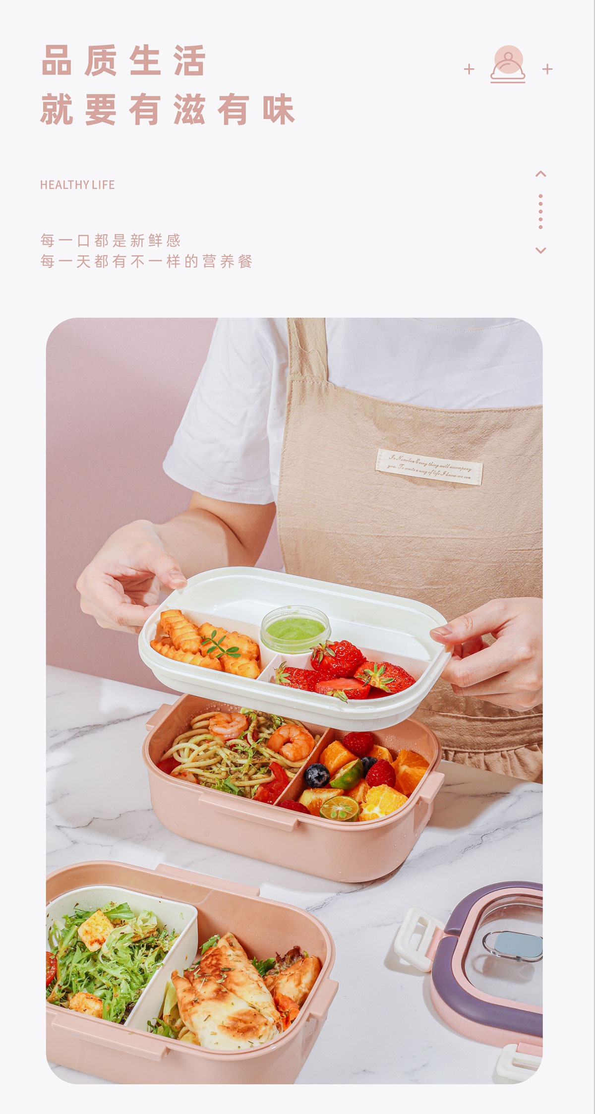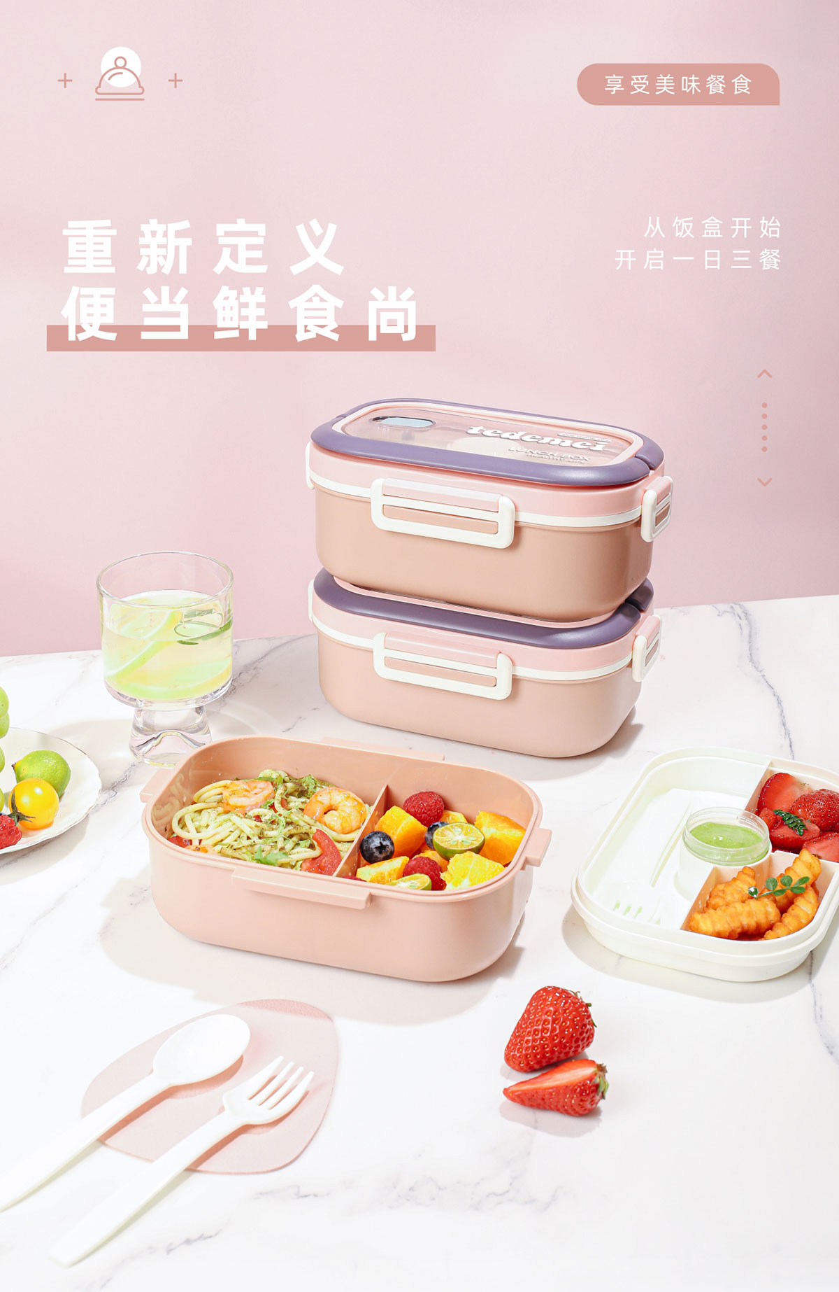 長方形便攜單層飯盒(帶餐具)1.1L+500ml+330ml/1.1L+500ml