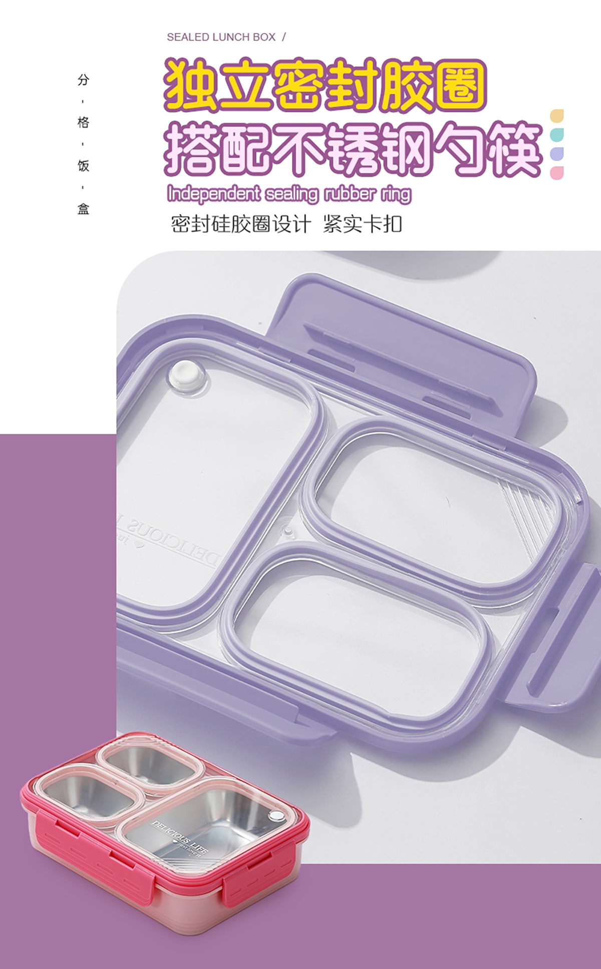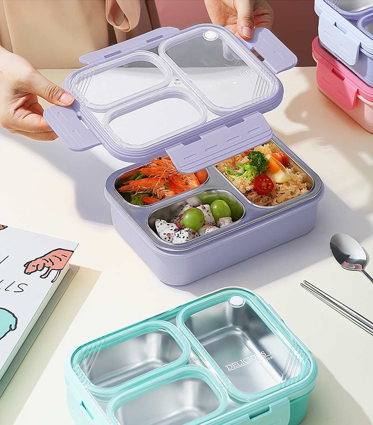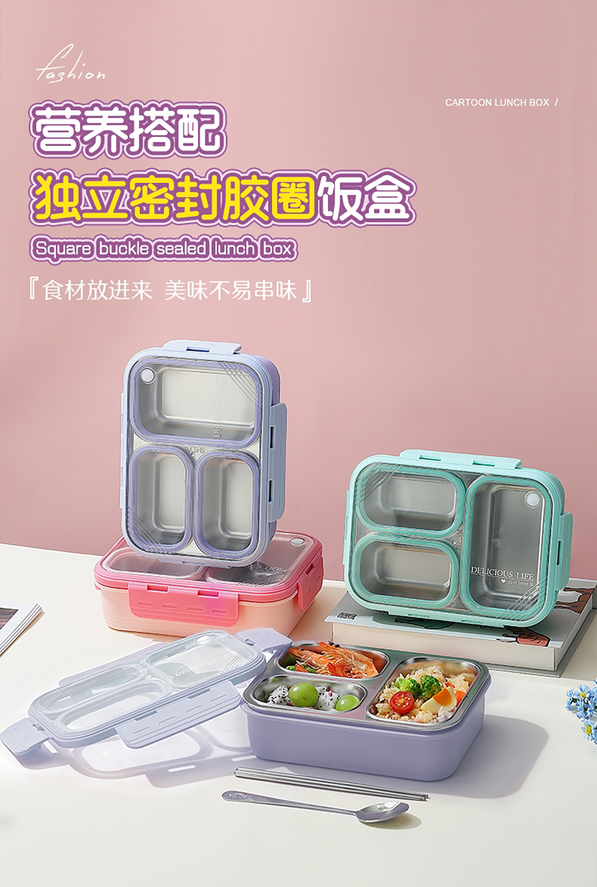 3格不串味不銹鋼餐盒620ml