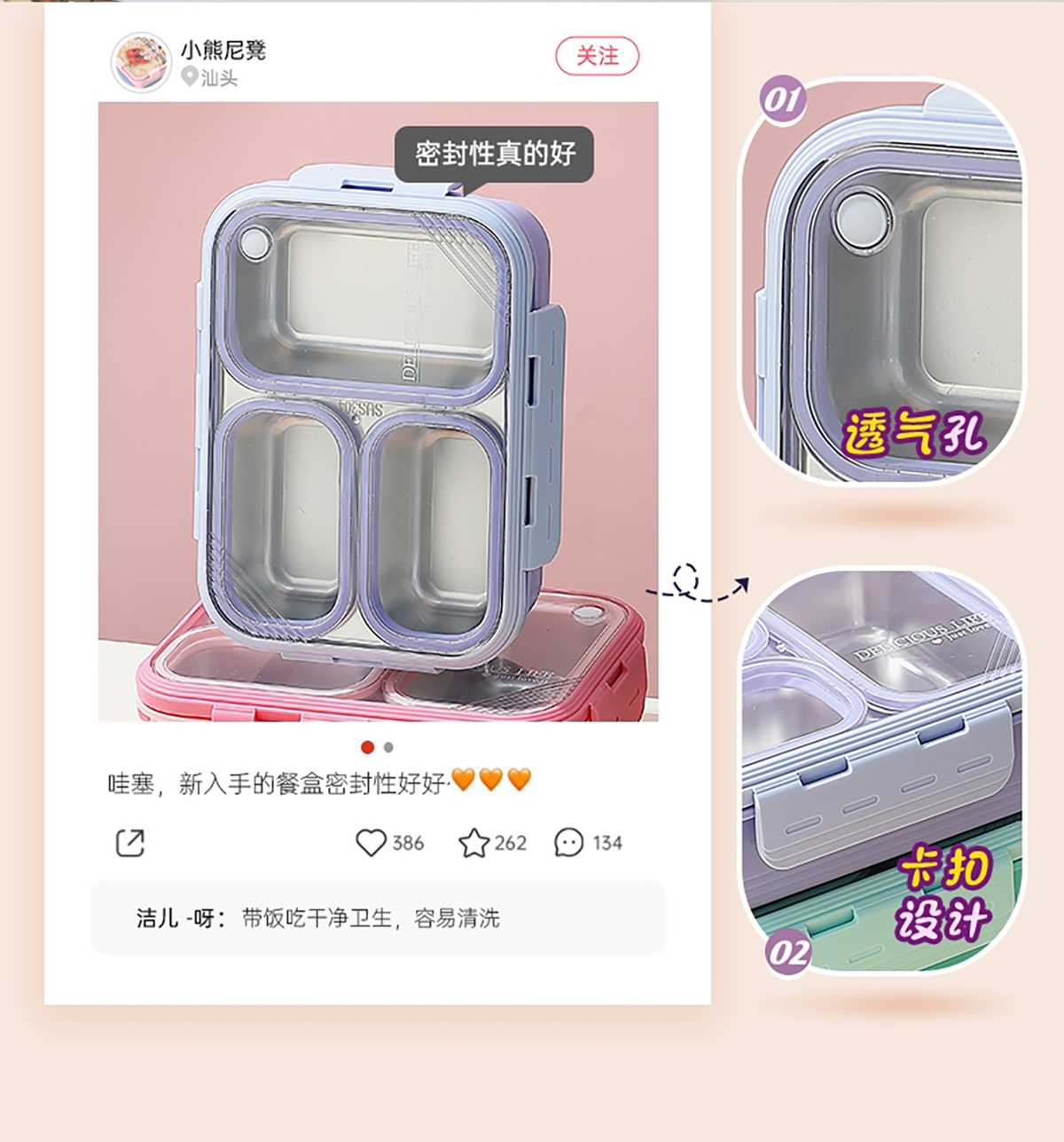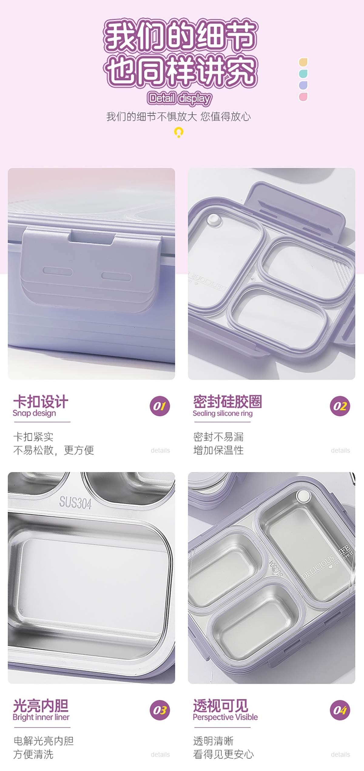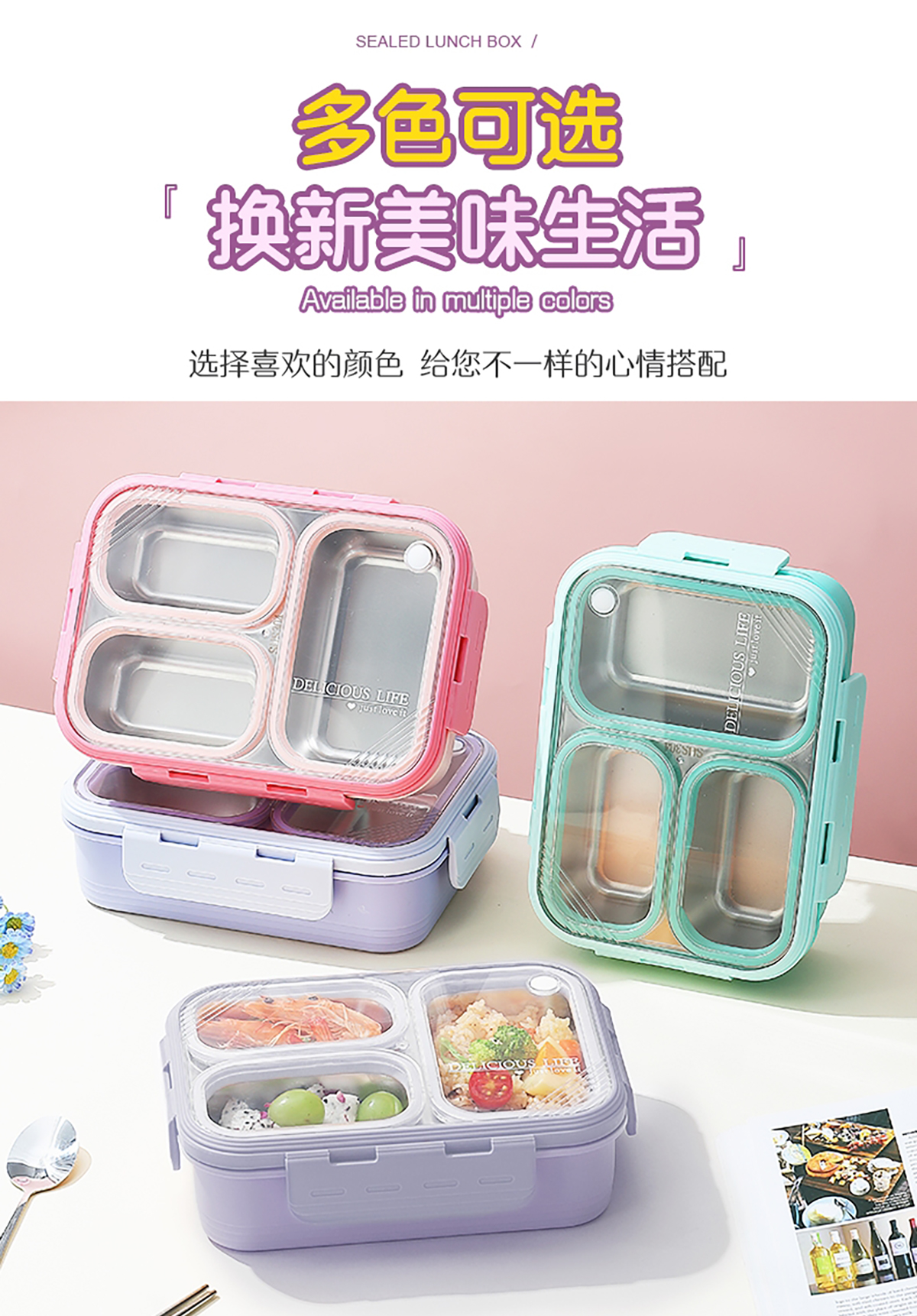 3格不串味不銹鋼餐盒620ml
