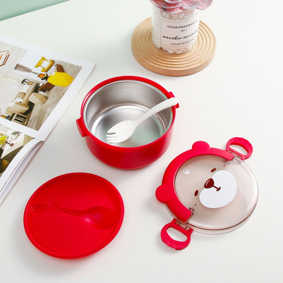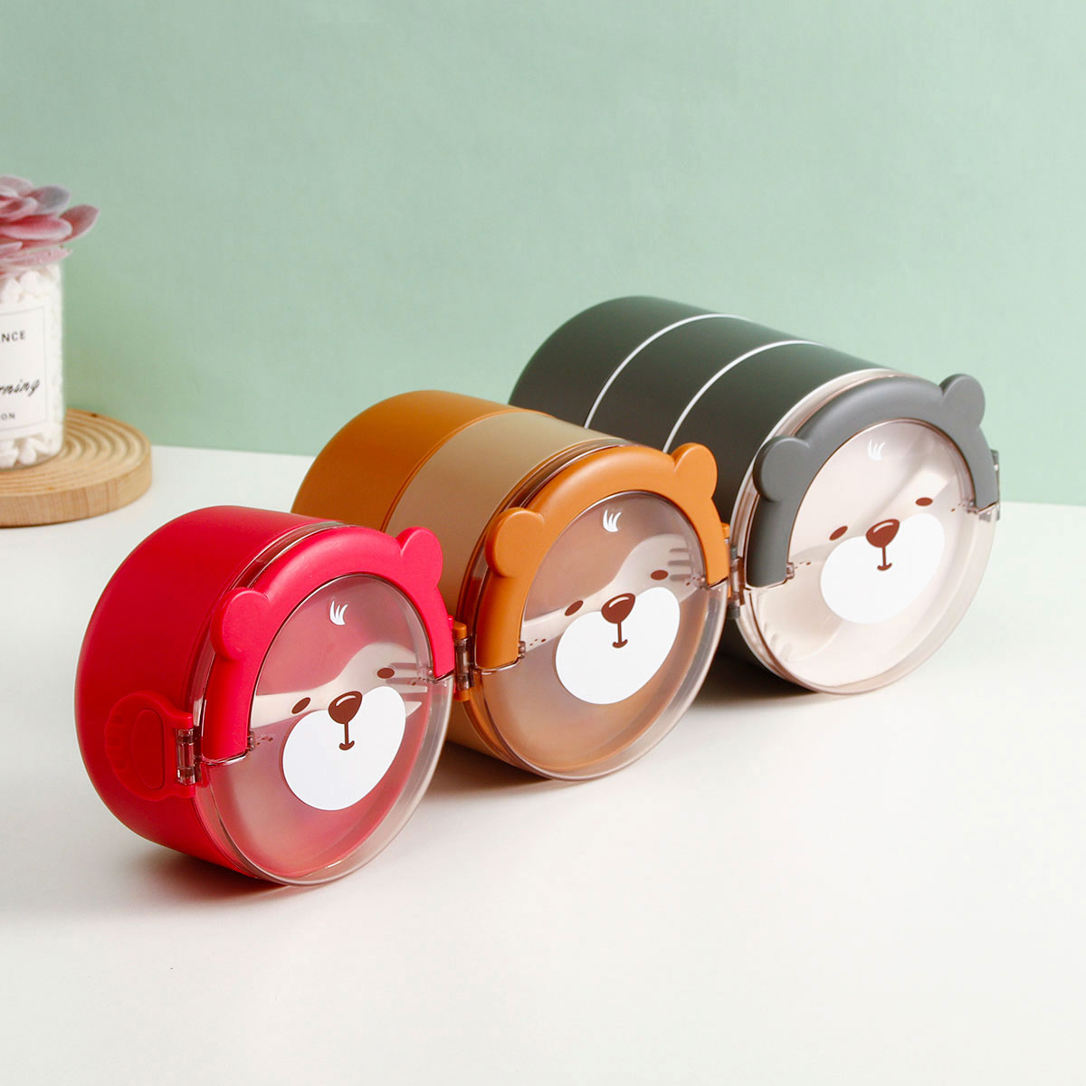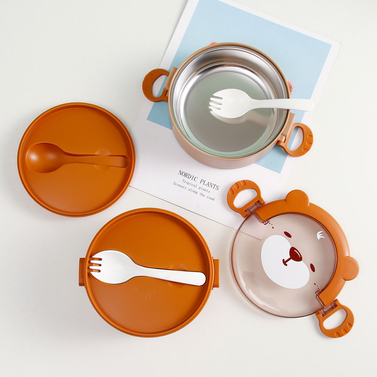樂味熊圓形單層/雙層/三層不銹鋼飯盒