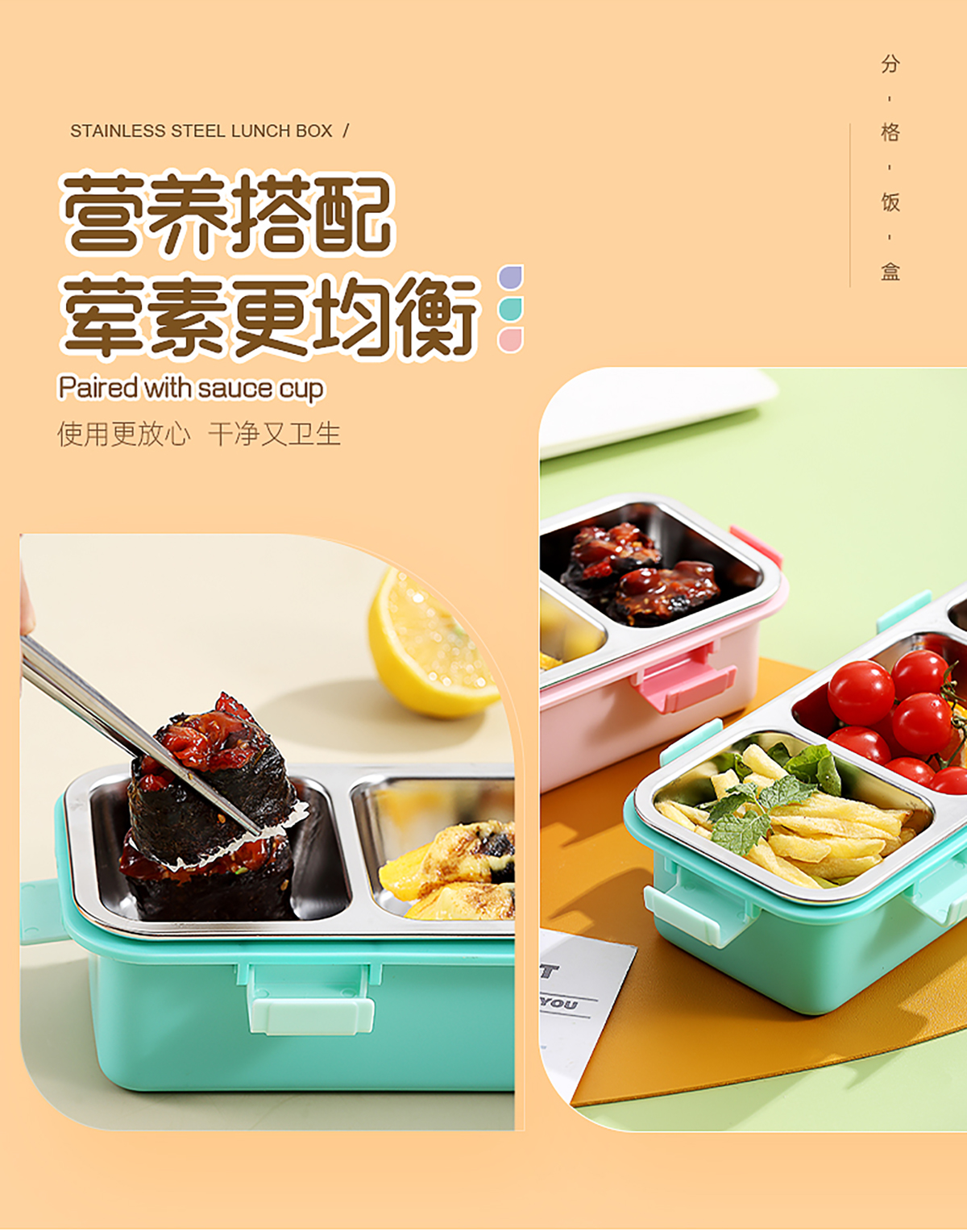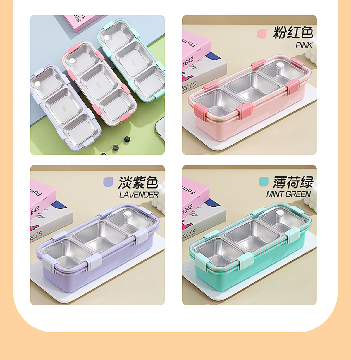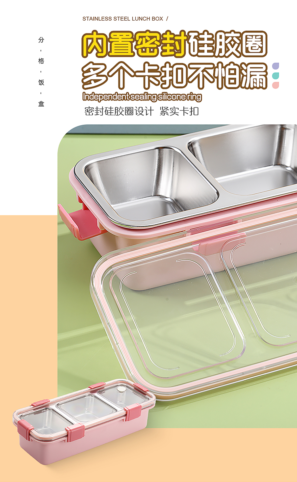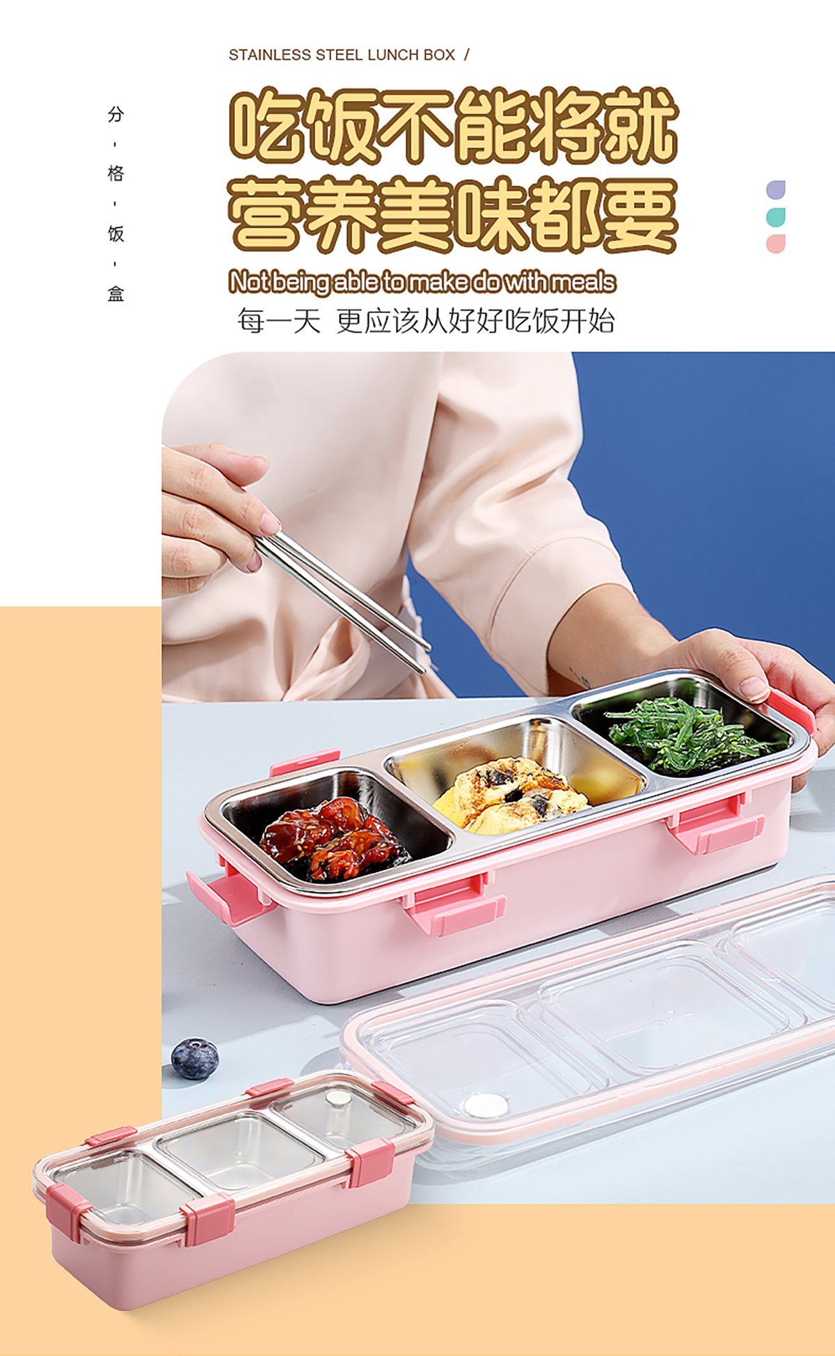 輕食不銹鋼餐盒三格585ml