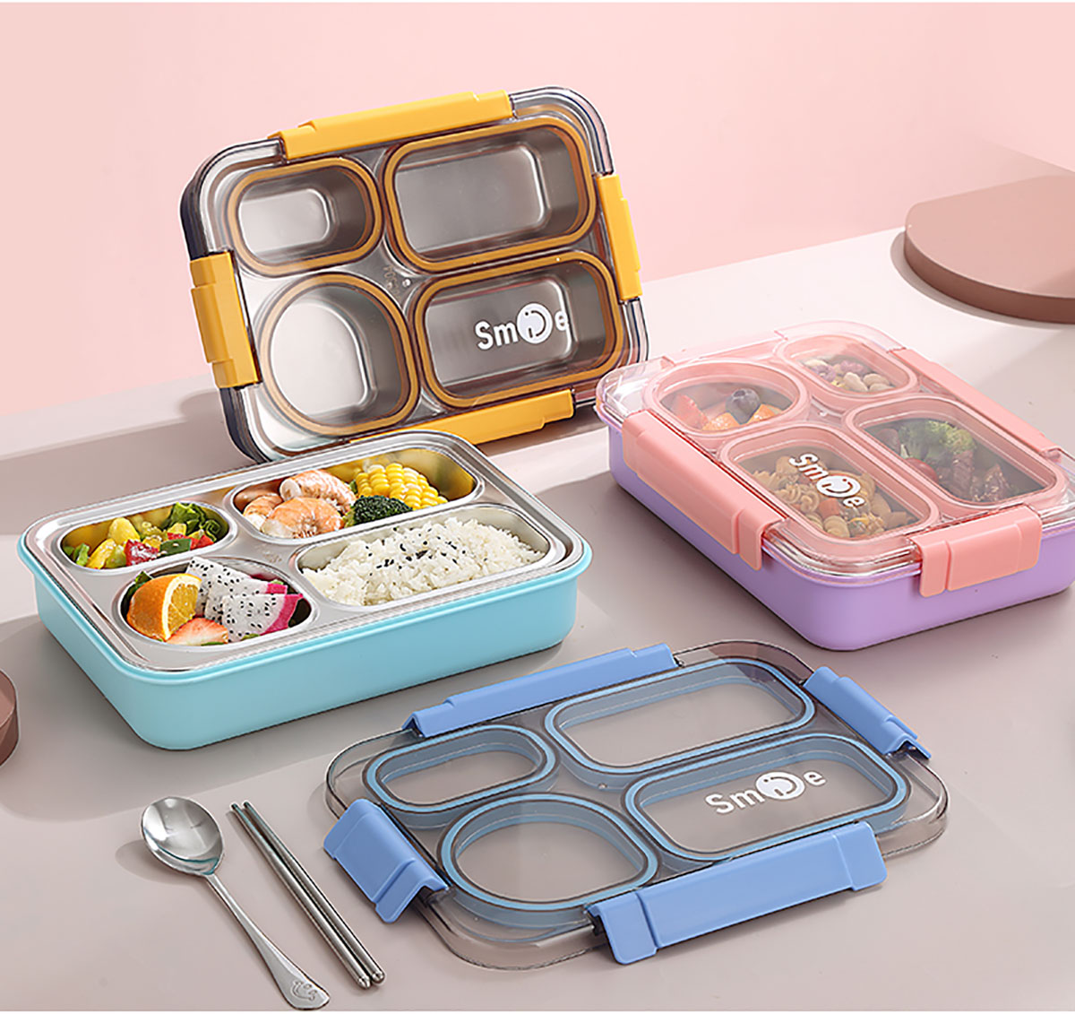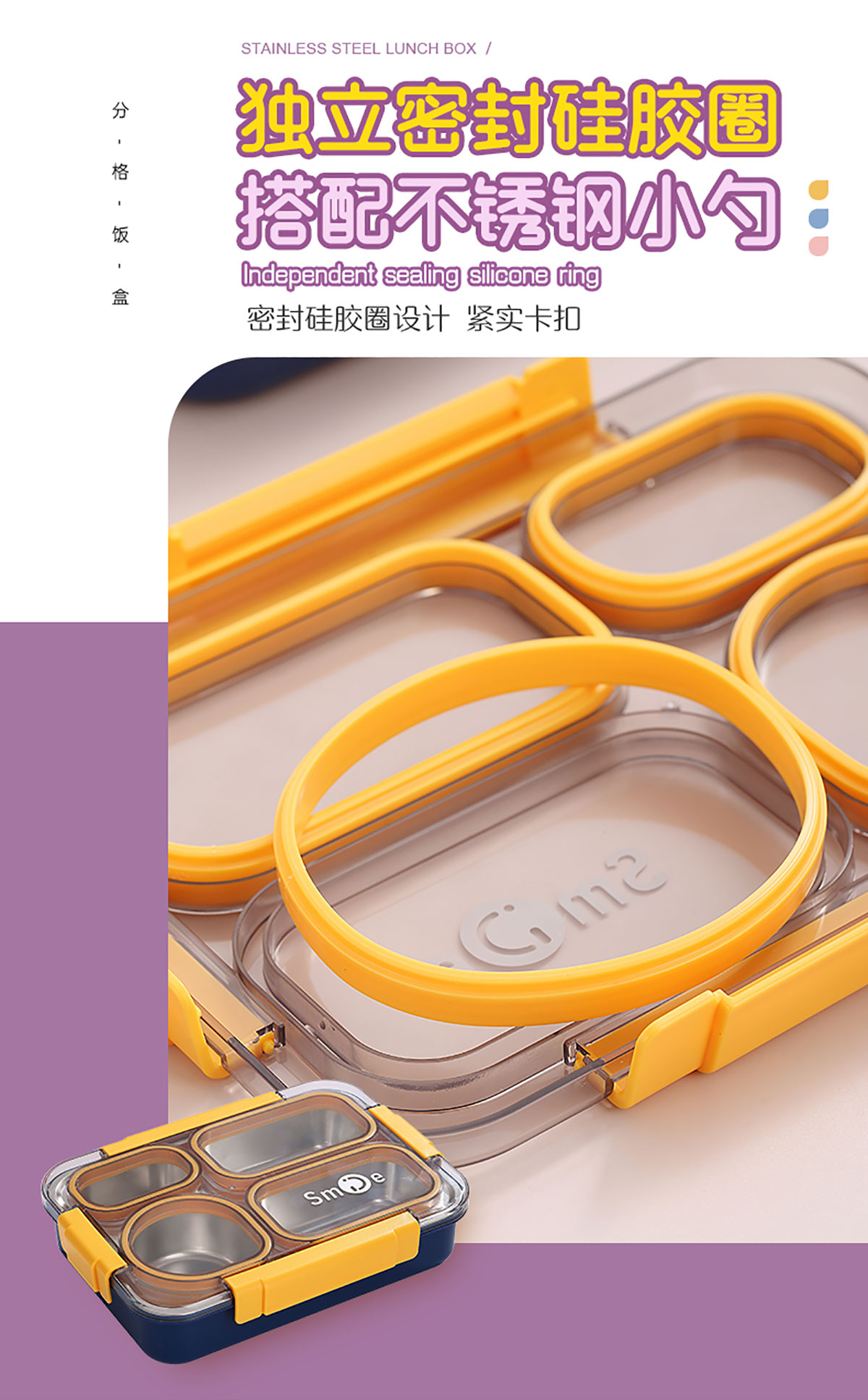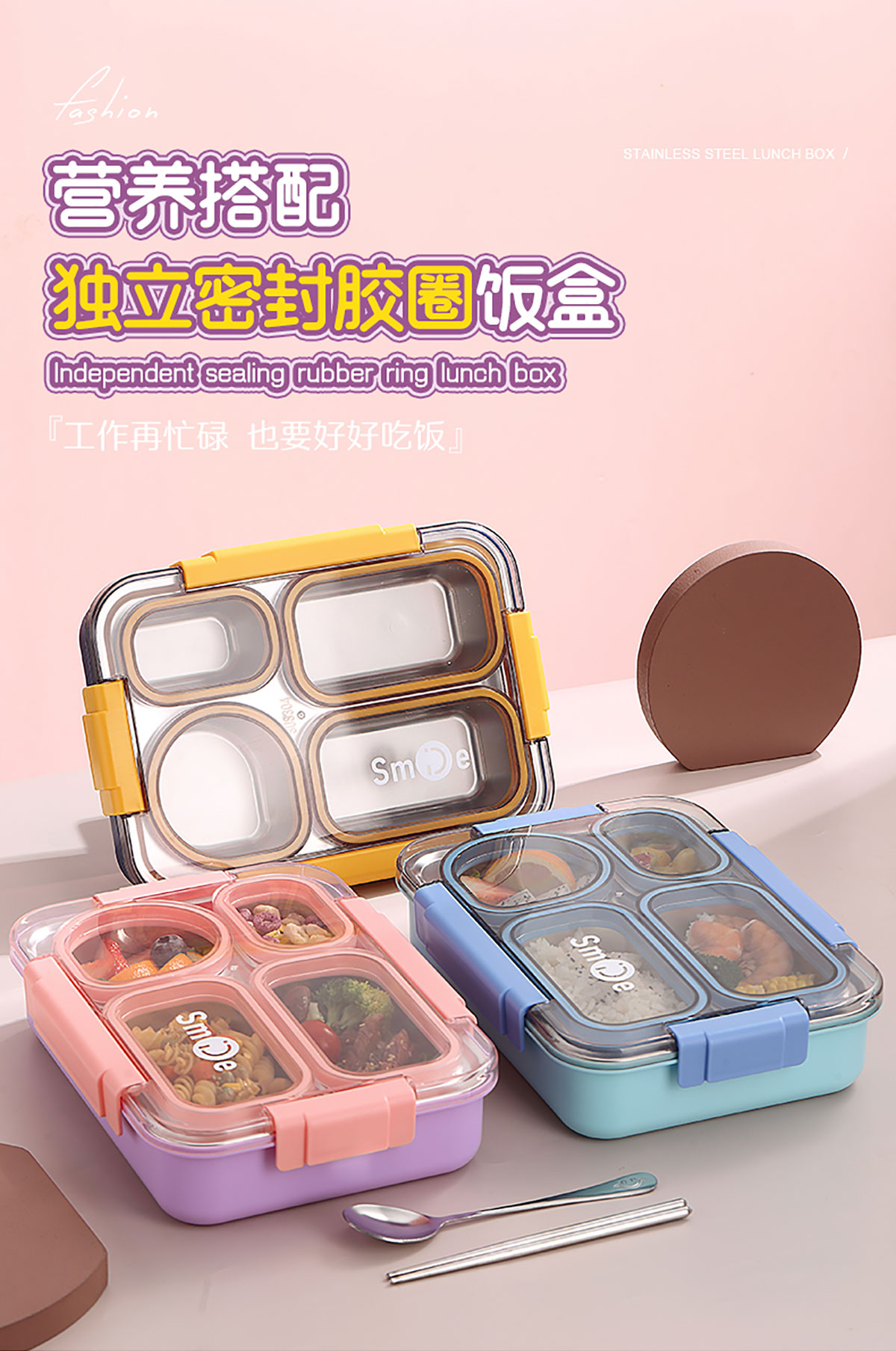 900ml獨立密封不銹鋼餐盒(4格+不銹鋼勺筷)