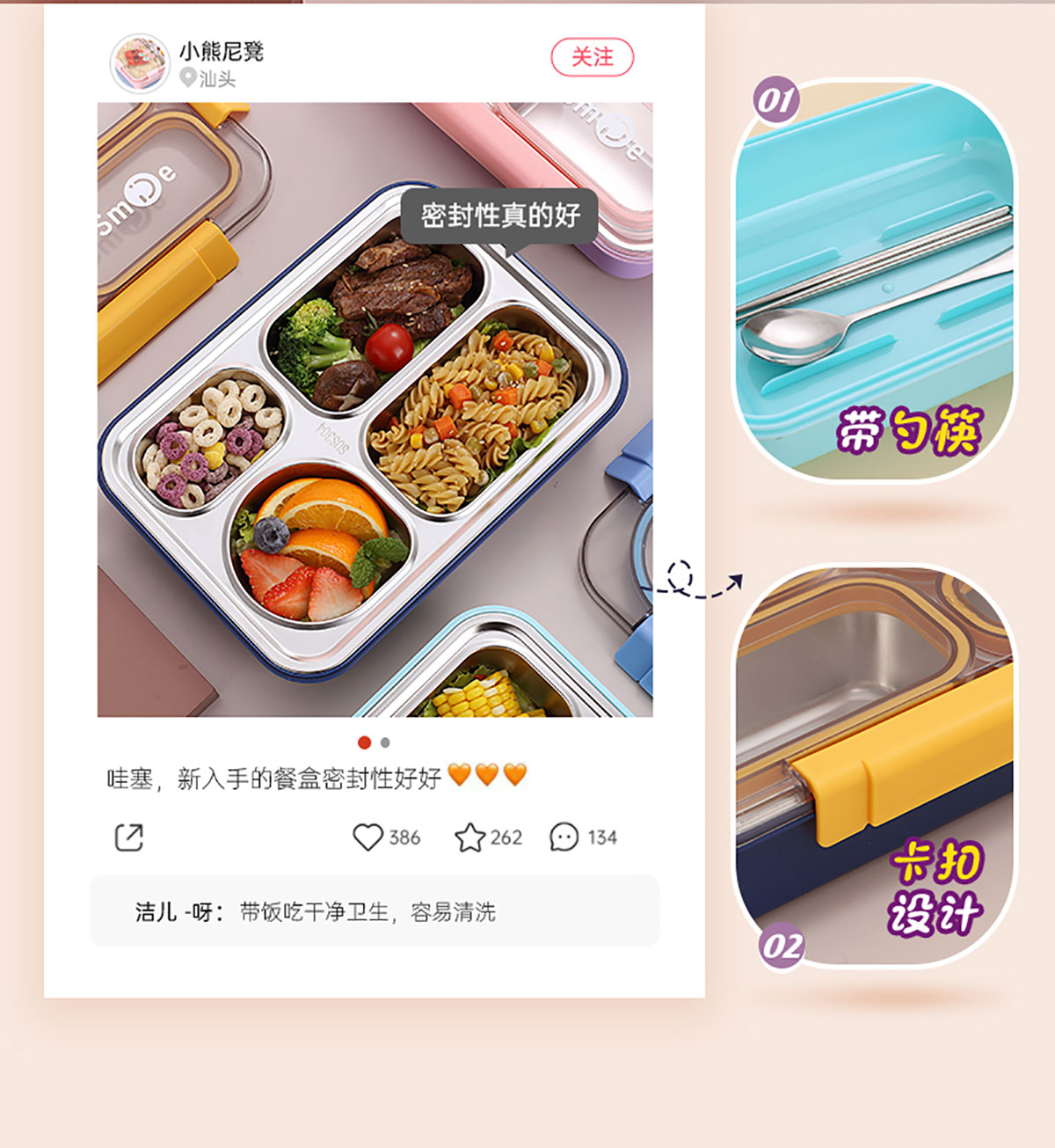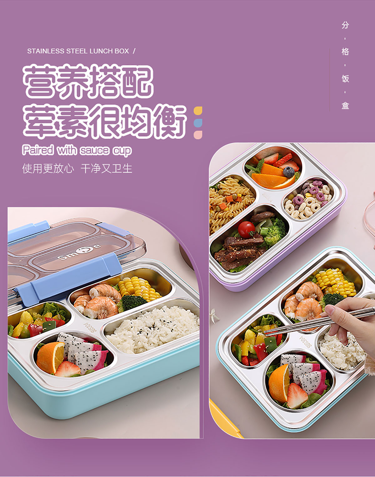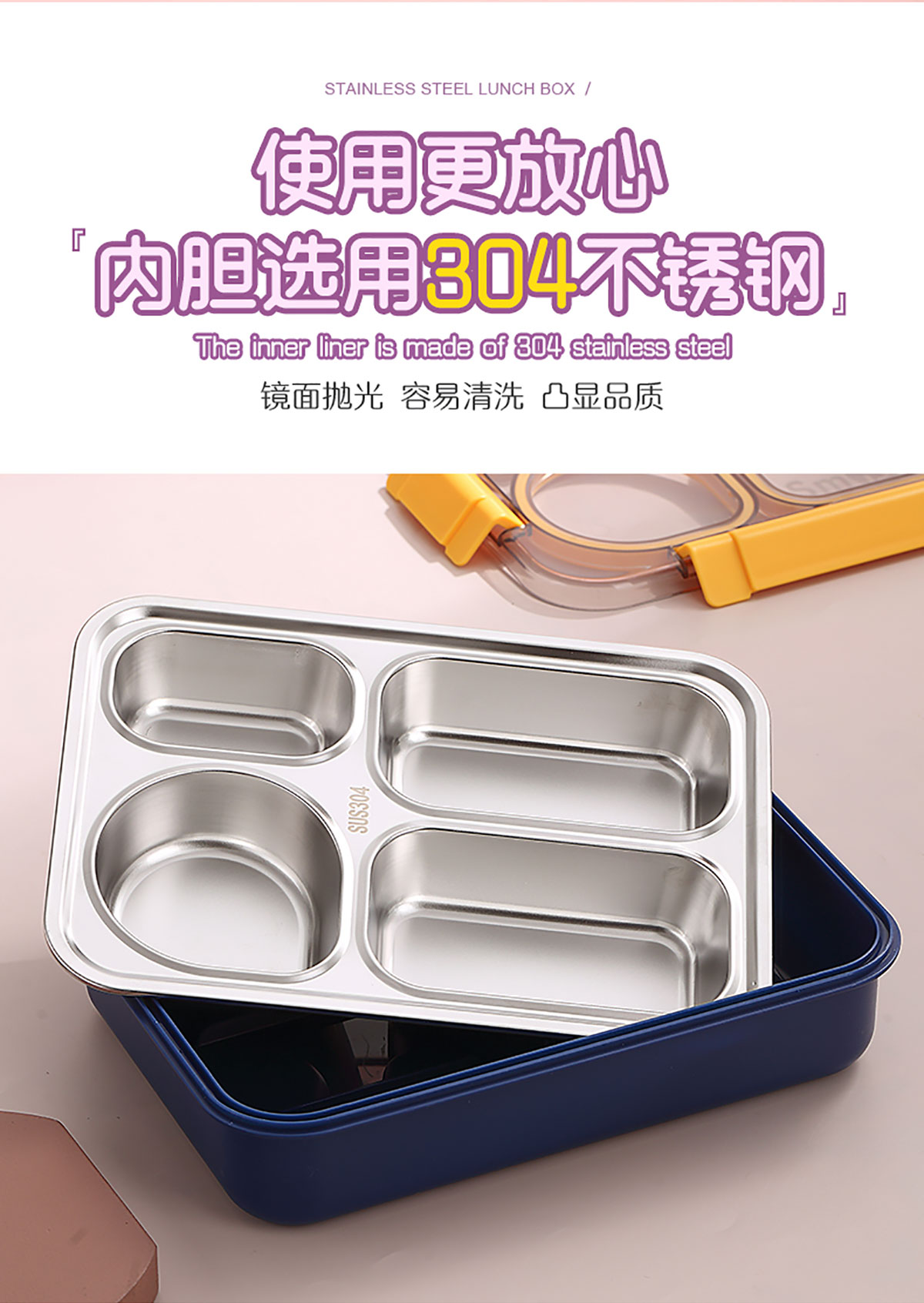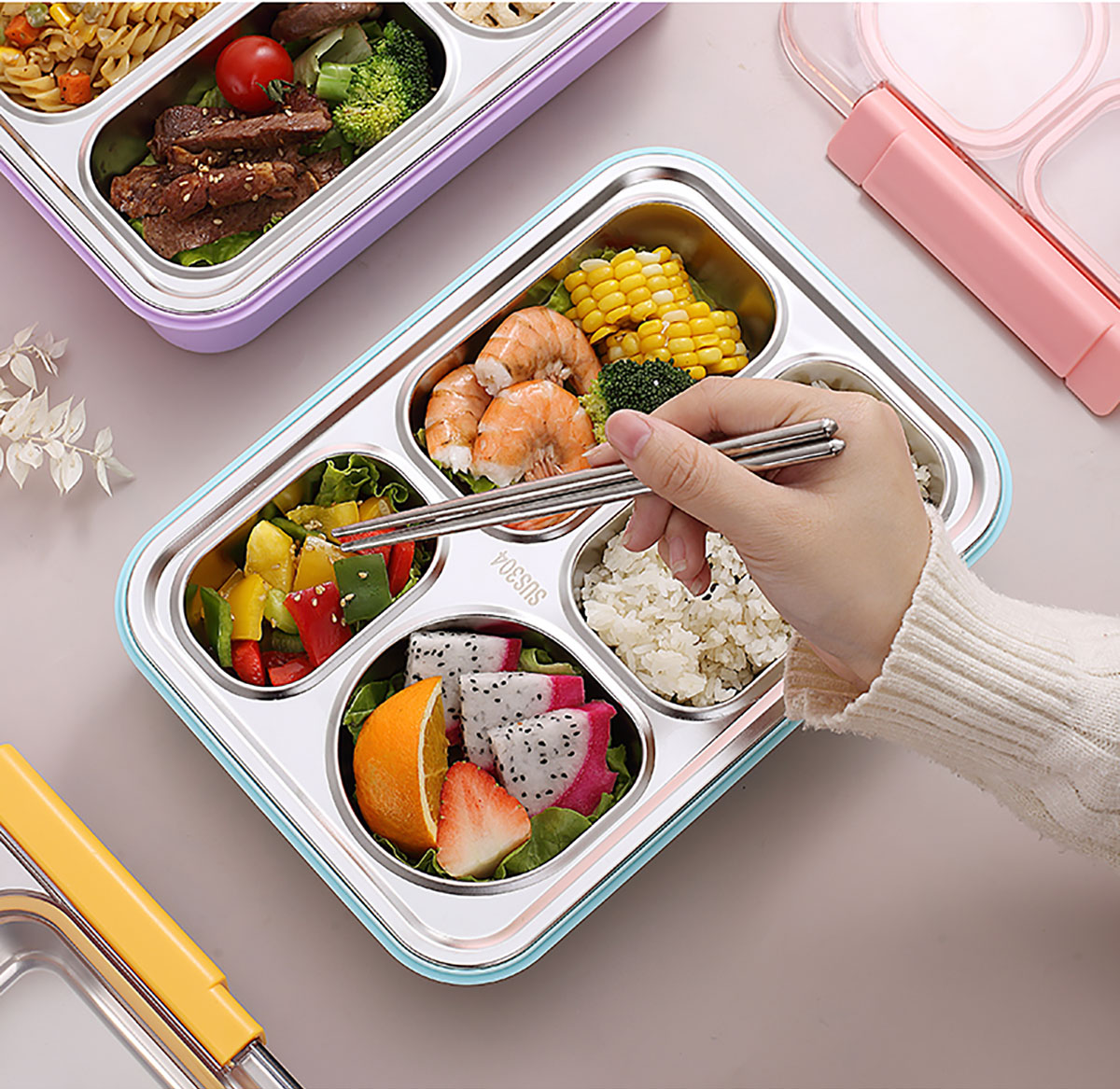 900ml獨立密封不銹鋼餐盒(4格+不銹鋼勺筷)