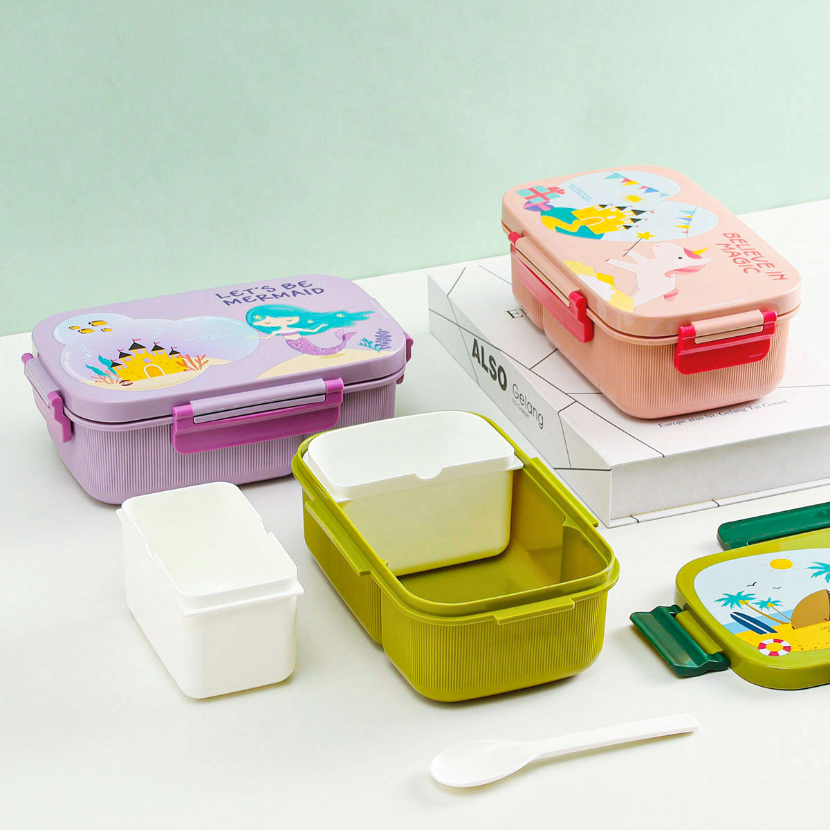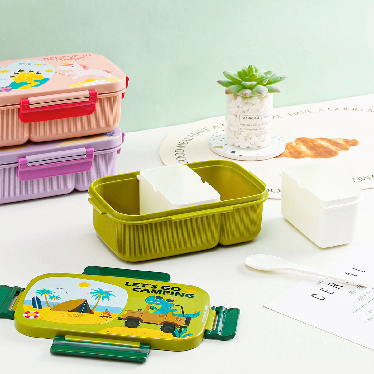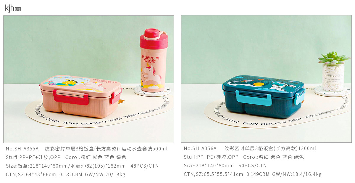 紋彩密封單層3格飯盒(長(zhǎng)方高款)1300mI+運(yùn)動(dòng)水壺套裝500ml