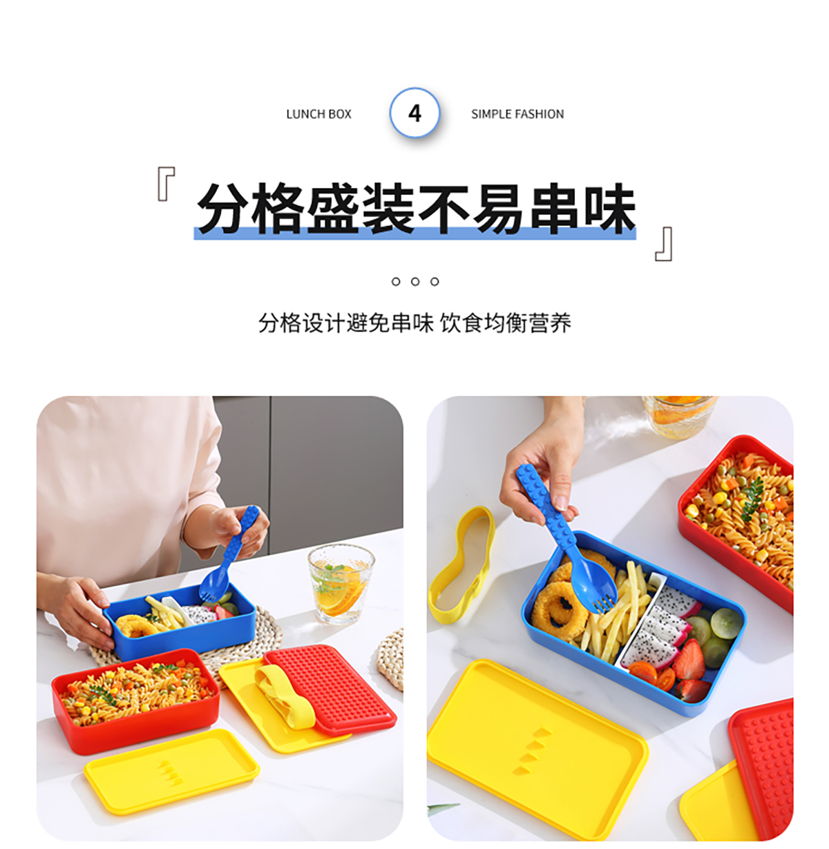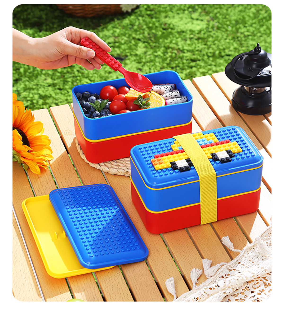積木長方雙層綁帶飯盒1000ml