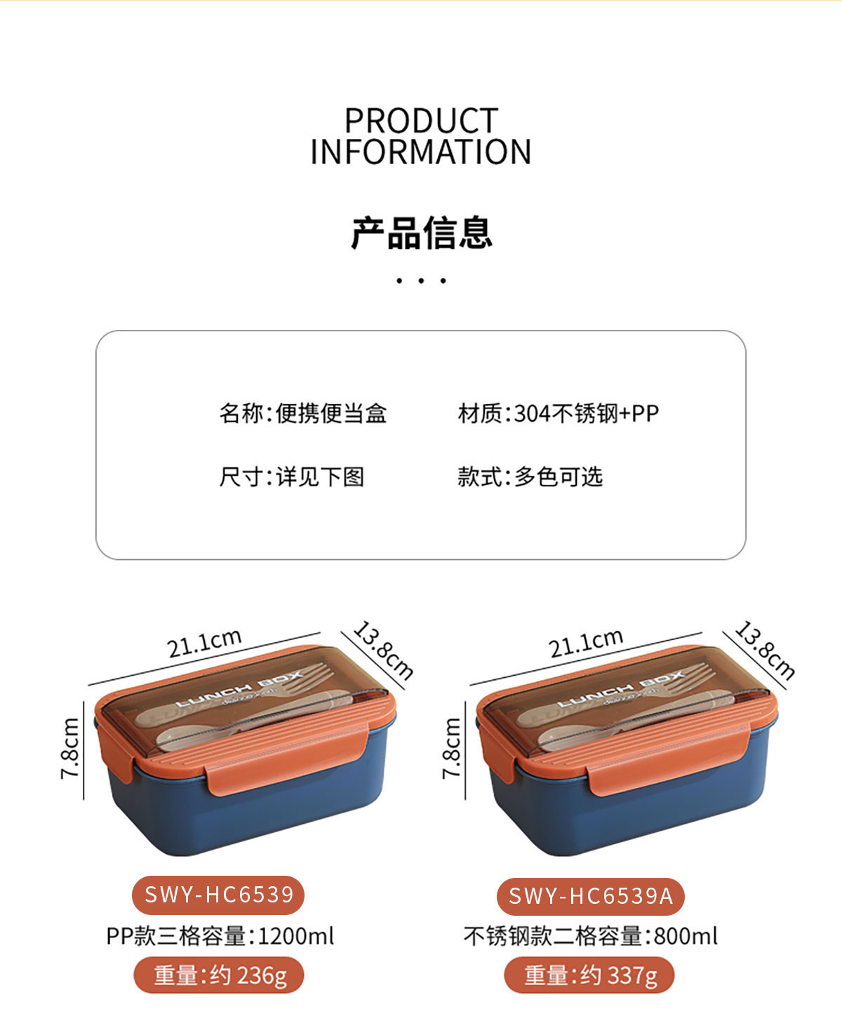 簡易便當(dāng)盒(PP款/PP加高款/不銹鋼款/套裝款) 2024新色