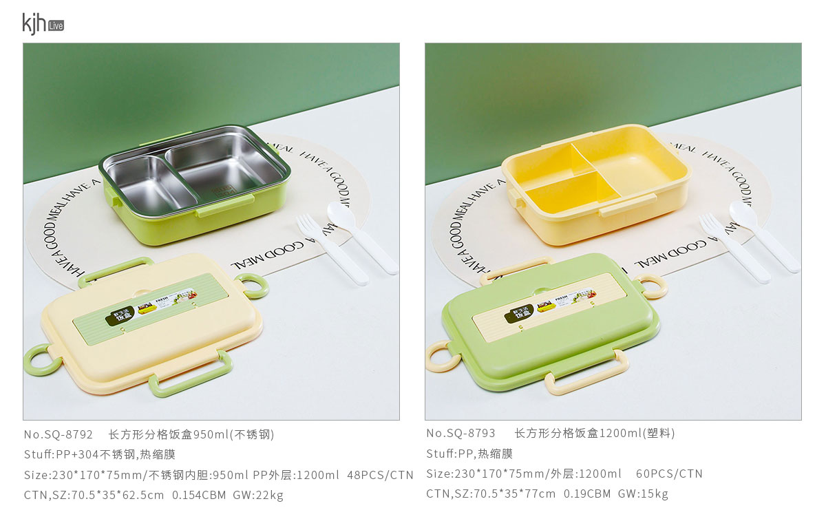 Size: SQ-8792(不銹鋼):230*170*75mm/不銹鋼內(nèi)膽:950ml PP外層:1200ml