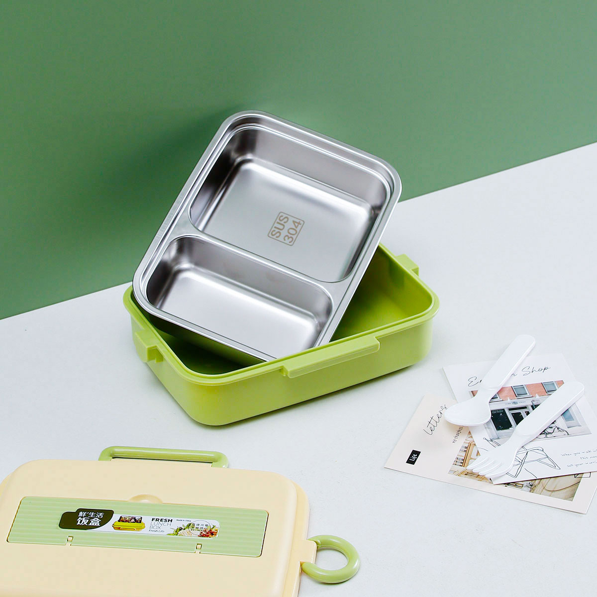 長方形分格飯盒950ml(不銹鋼)/1200ml(塑料)