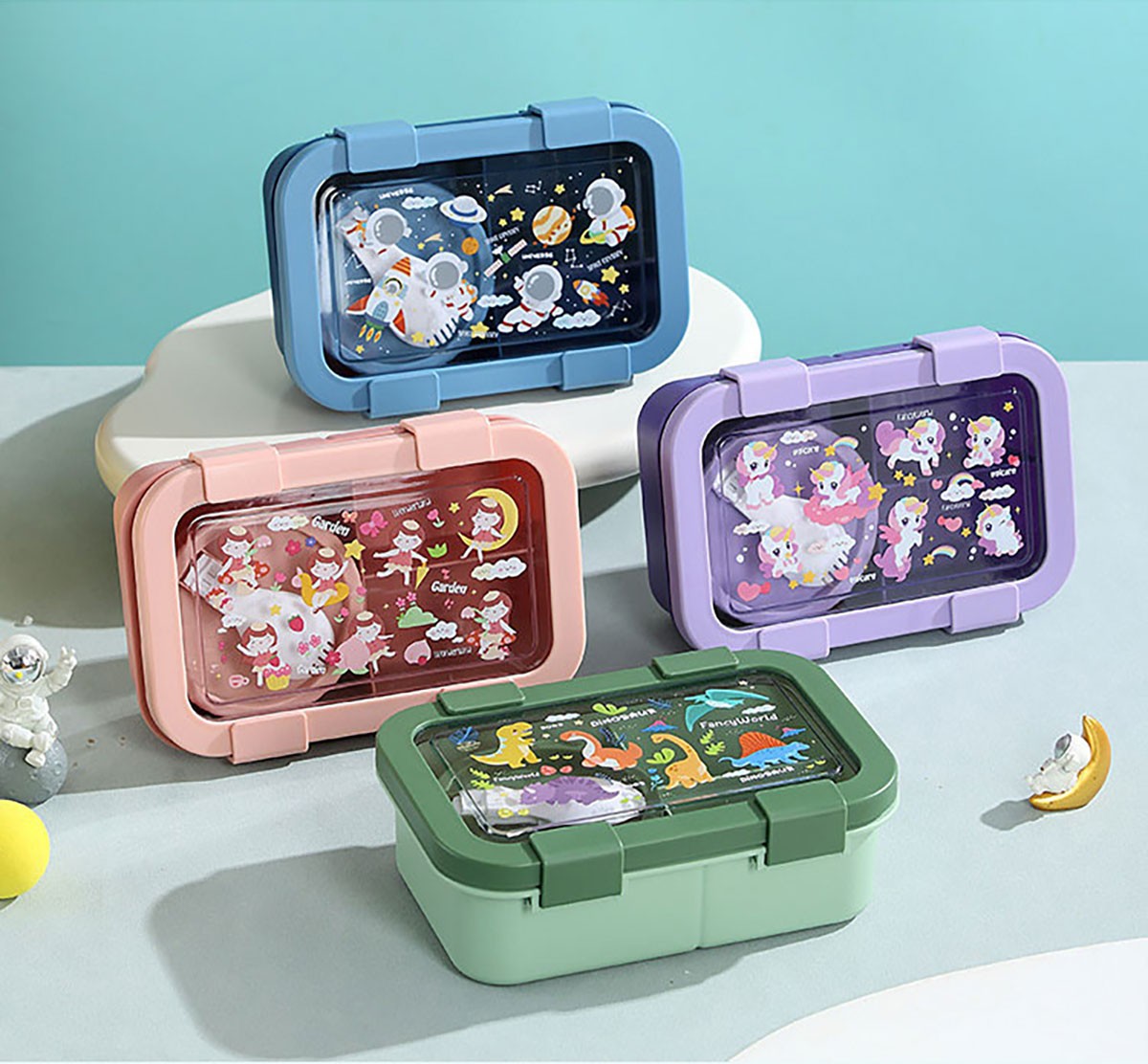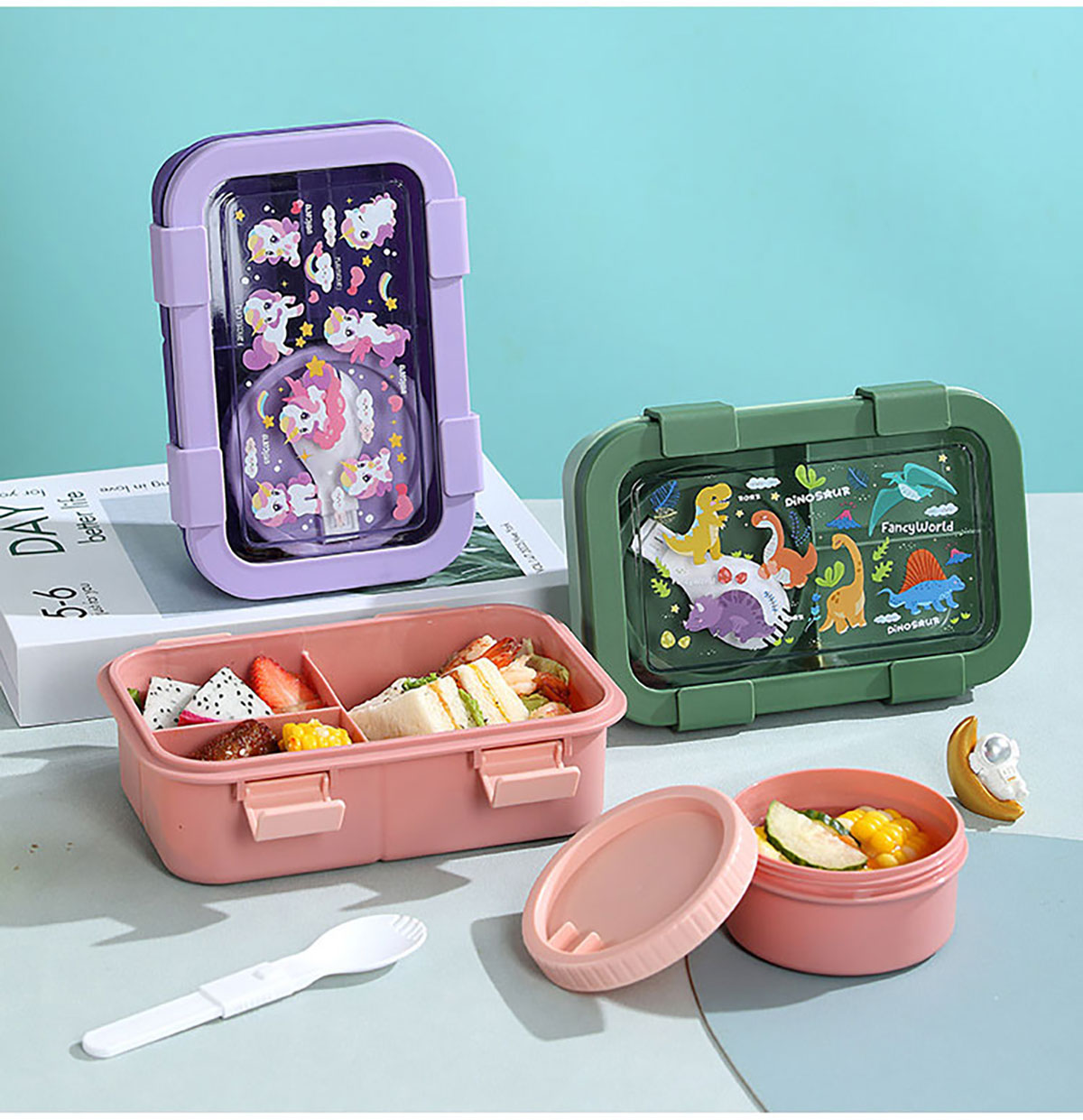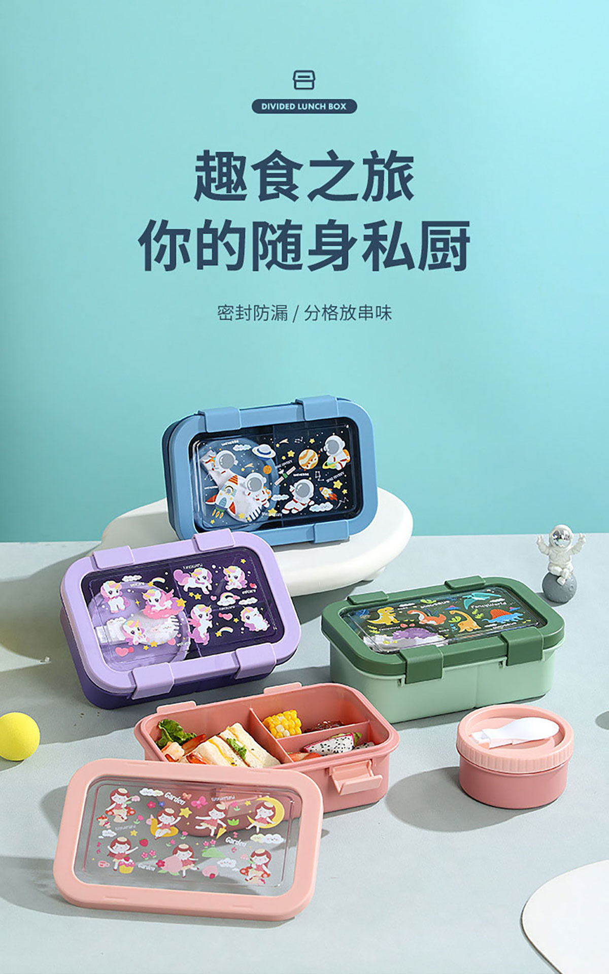 卡通分格飯盒(塑料三格)