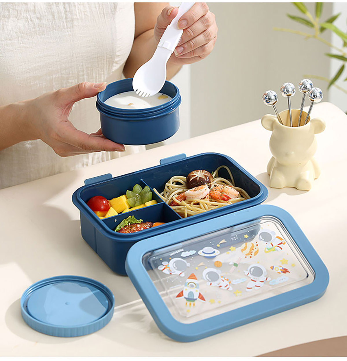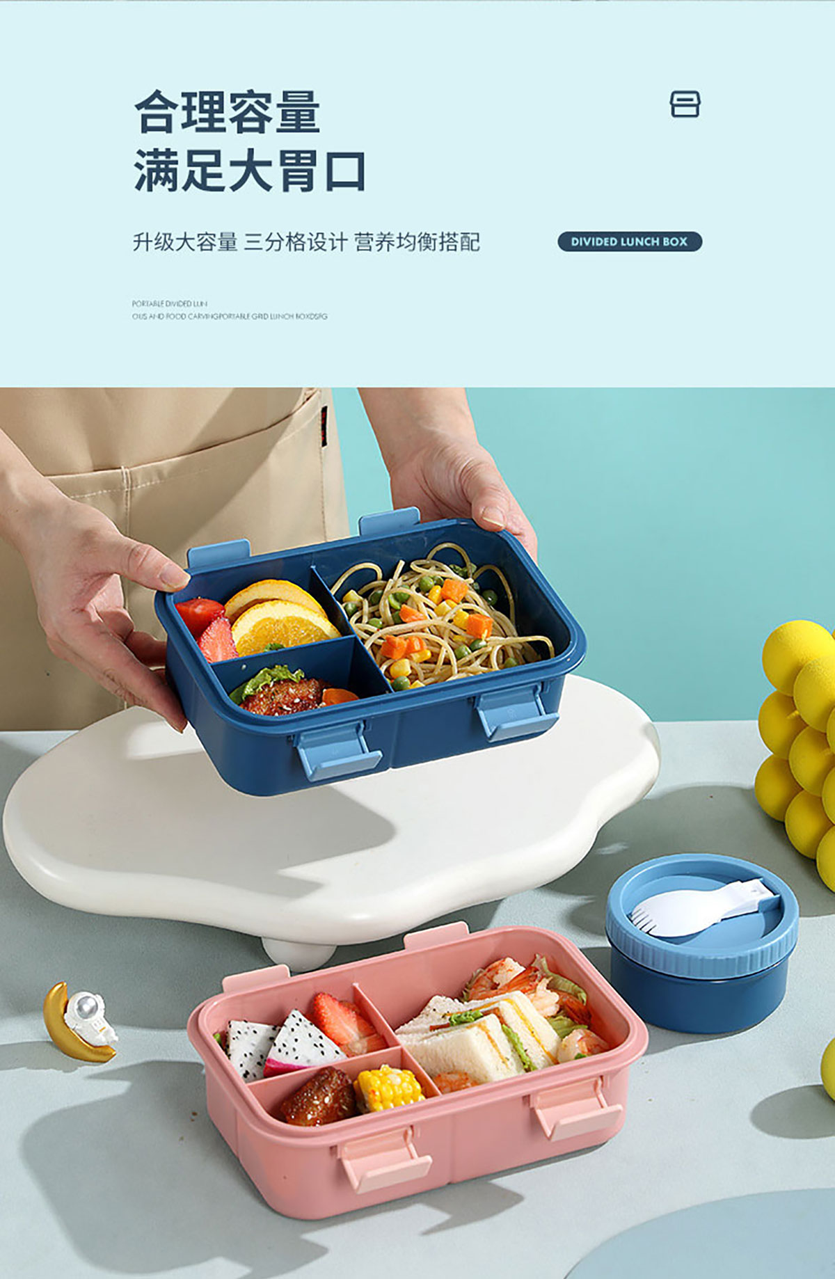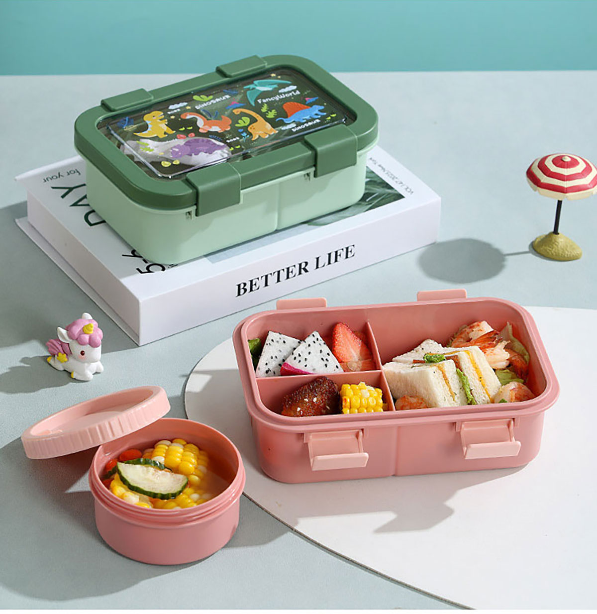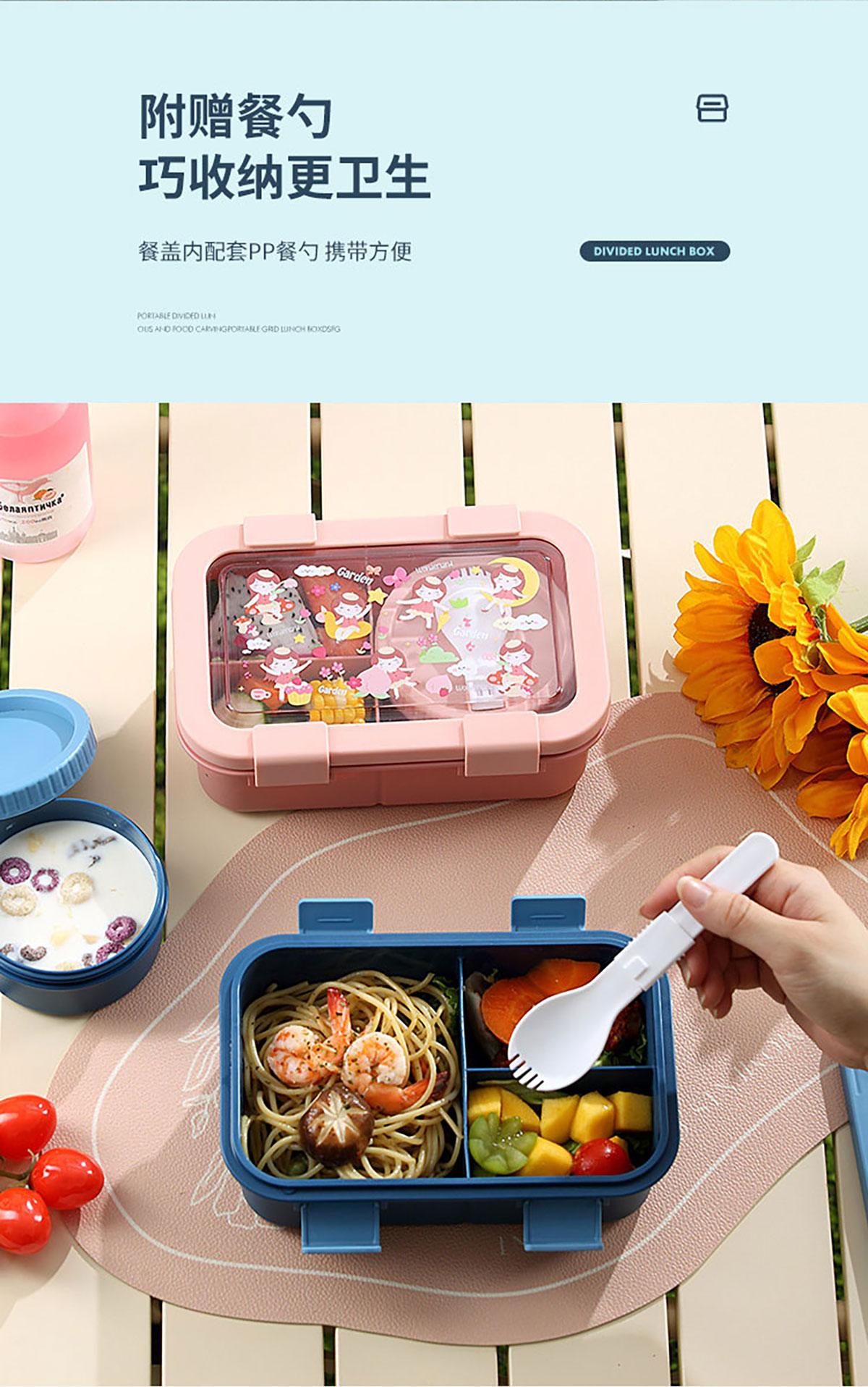 卡通分格飯盒(塑料三格)