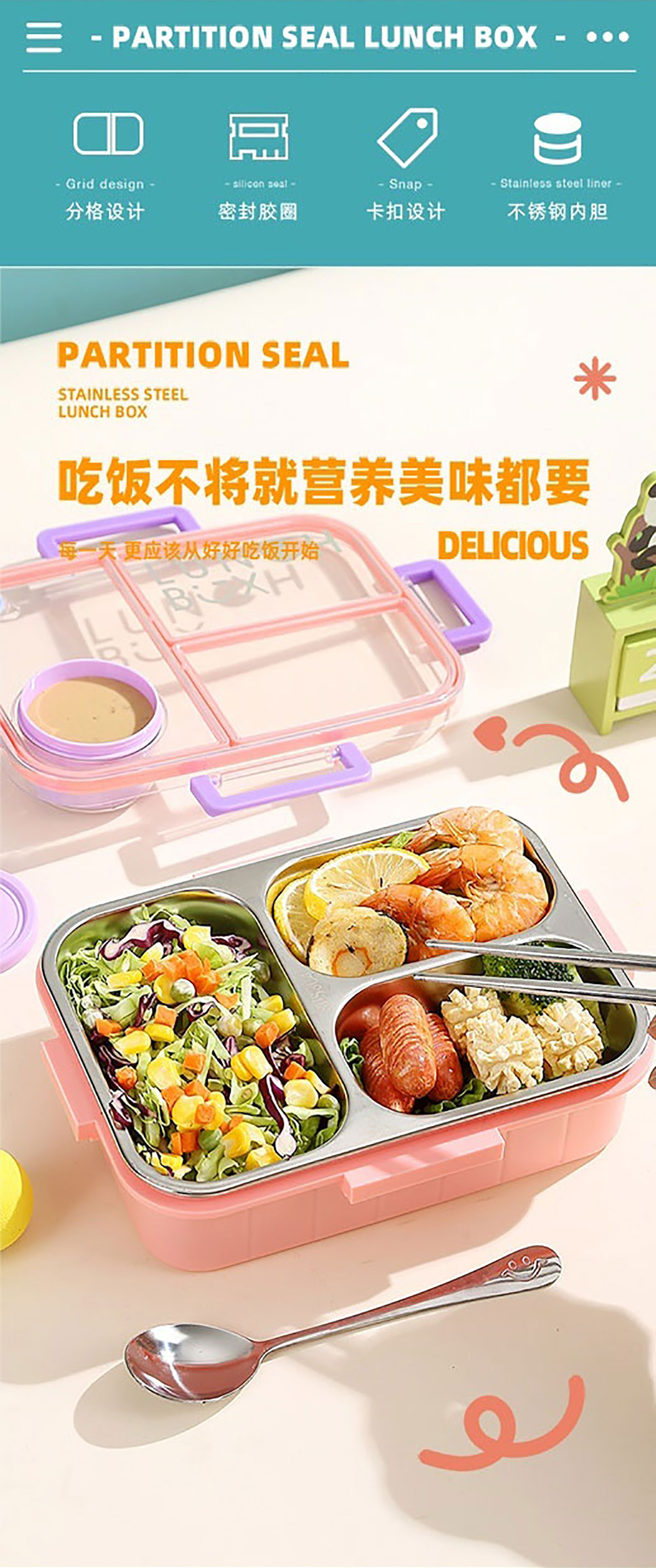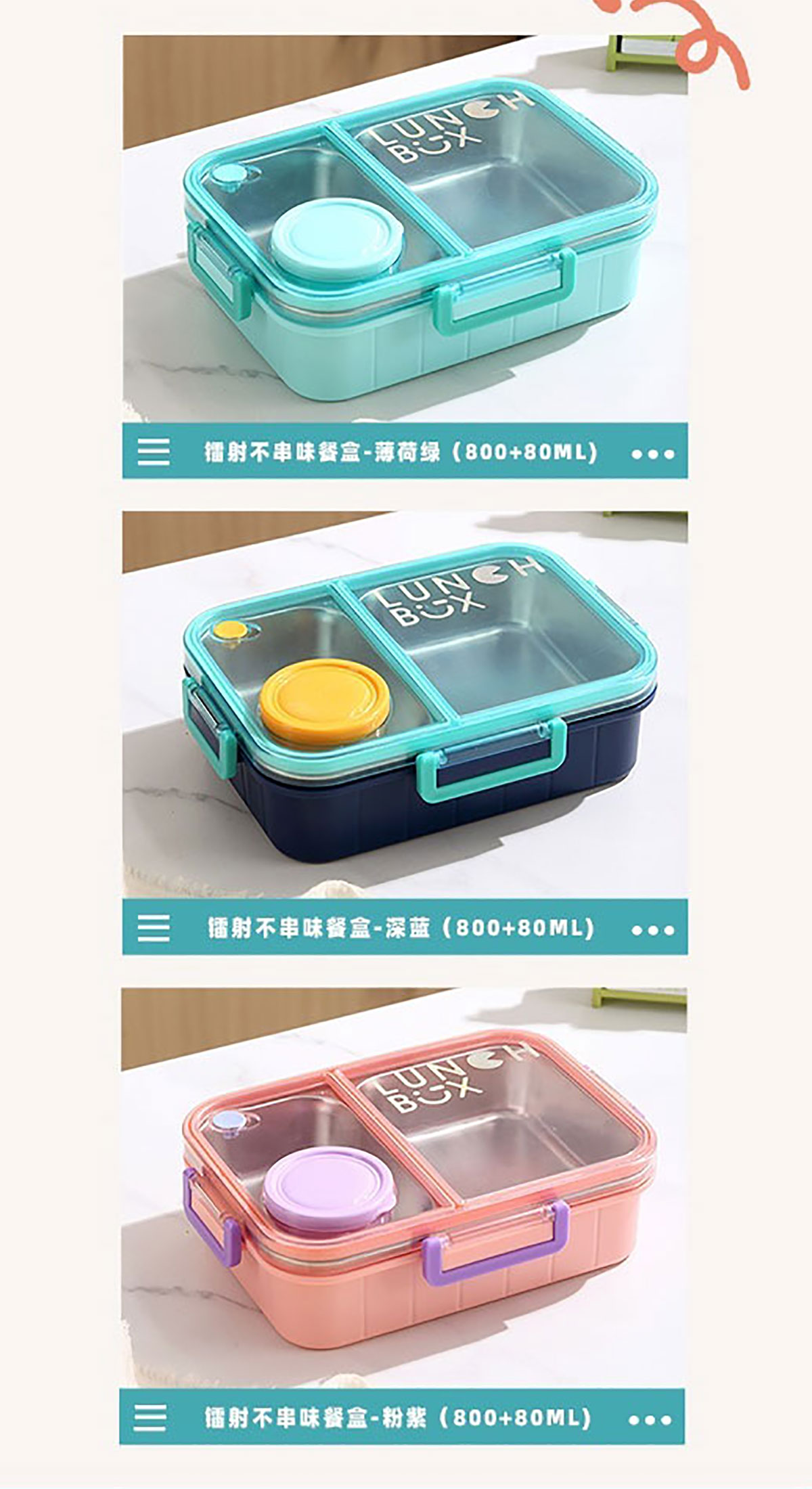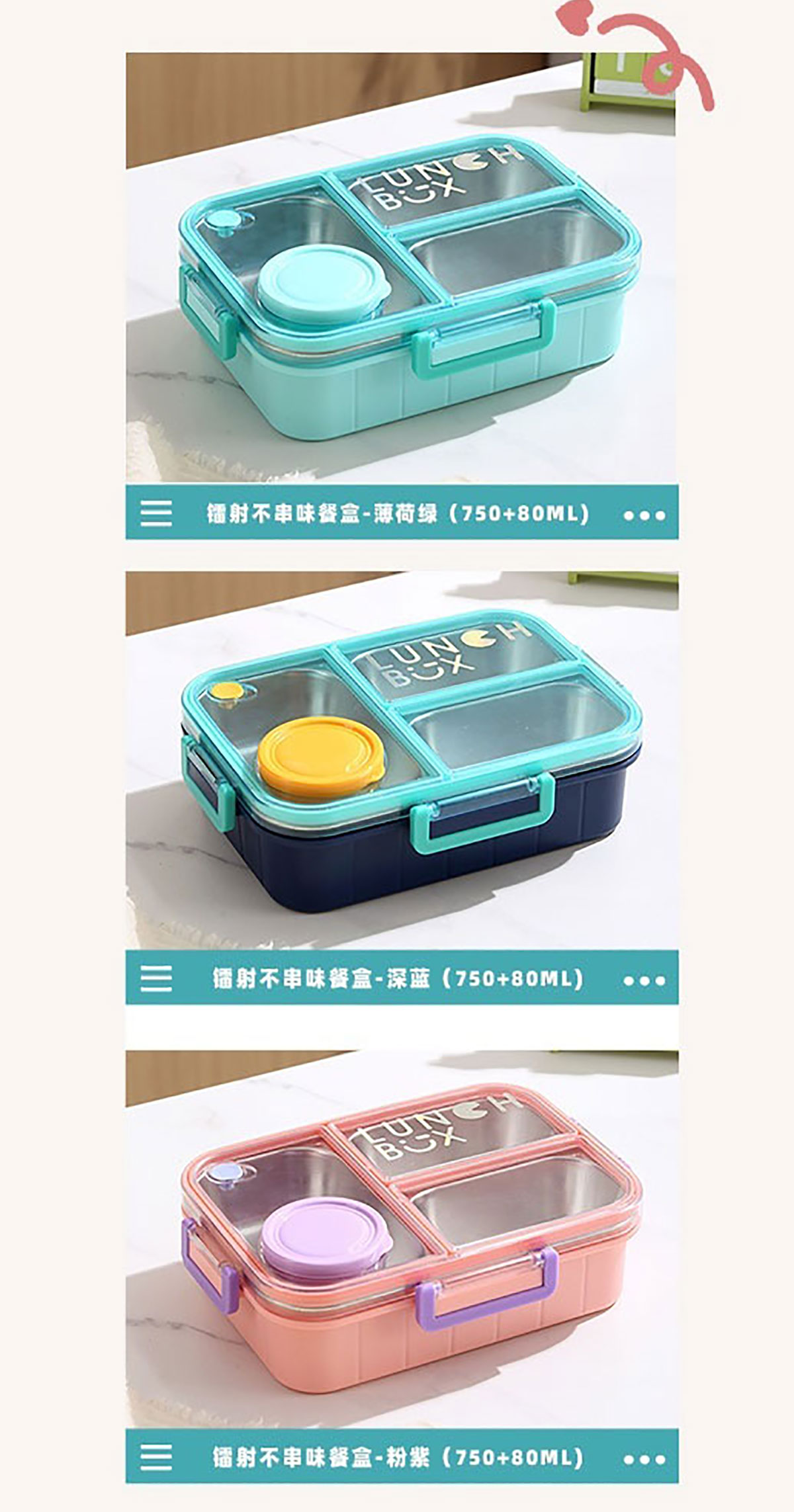 鐳射不串味餐盒(不銹鋼2格800ml/3格750ml+外置醬料杯80ml+不銹鋼勺筷)