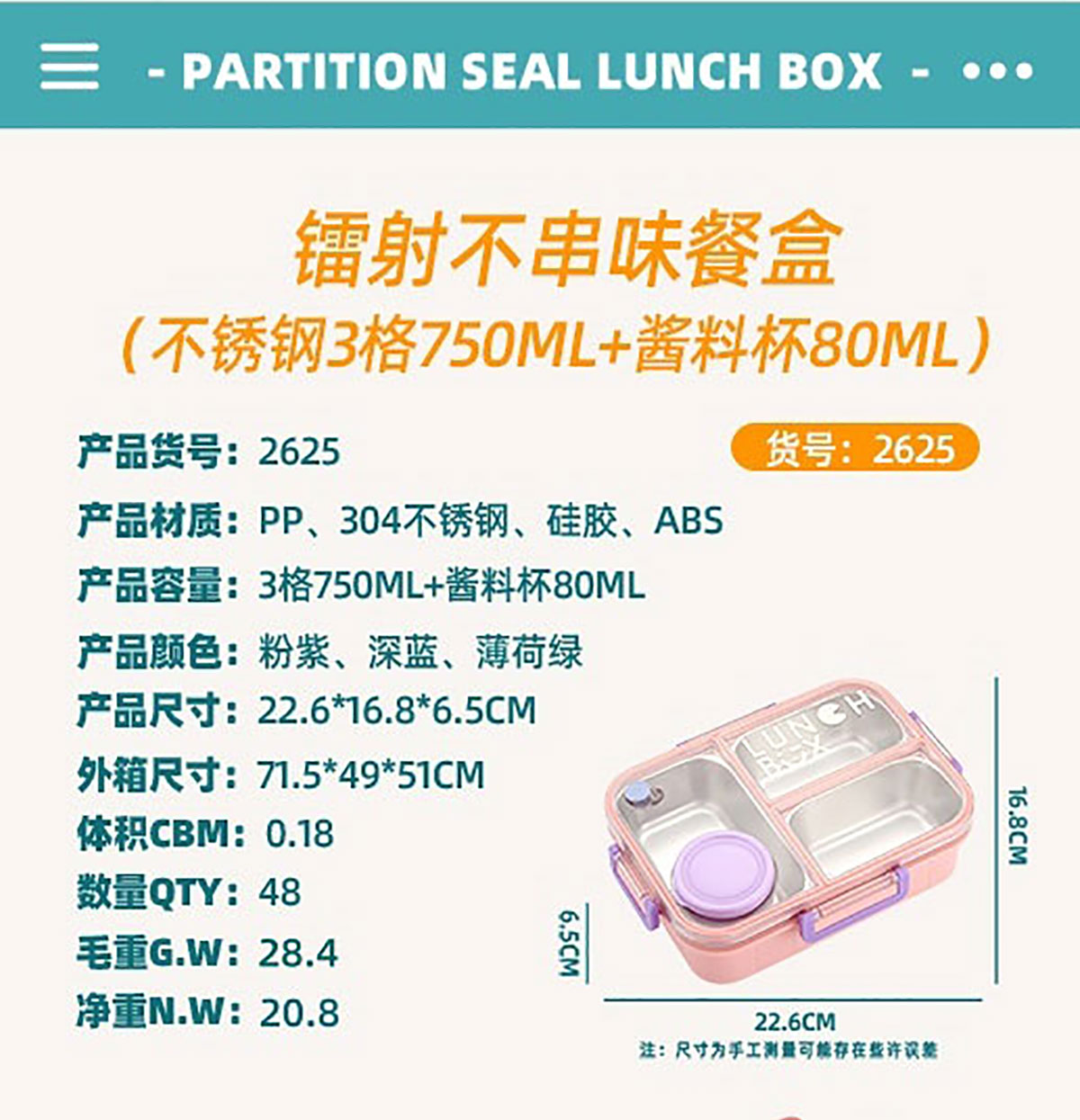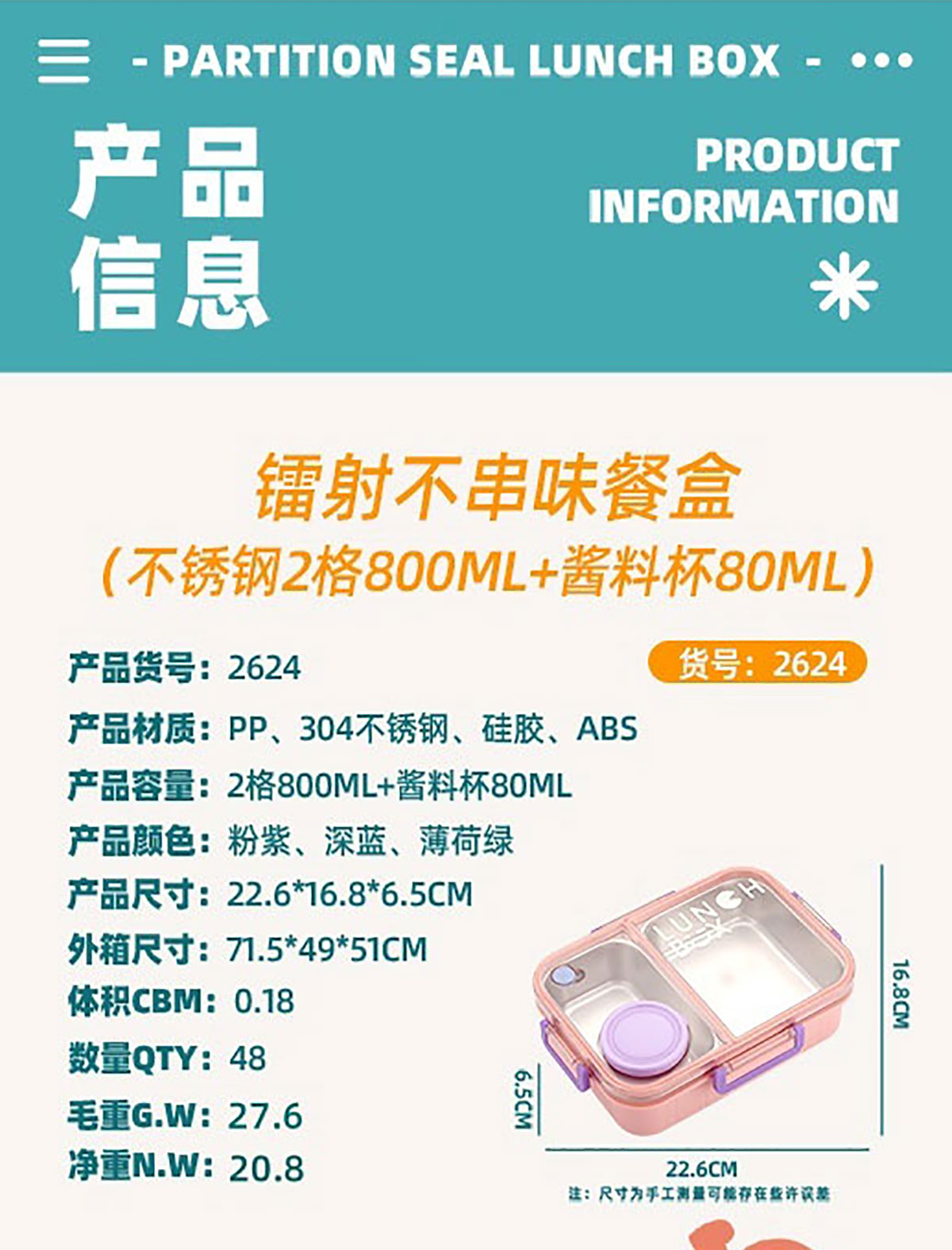 Size: AQX-2624(2格):226*168*65mm