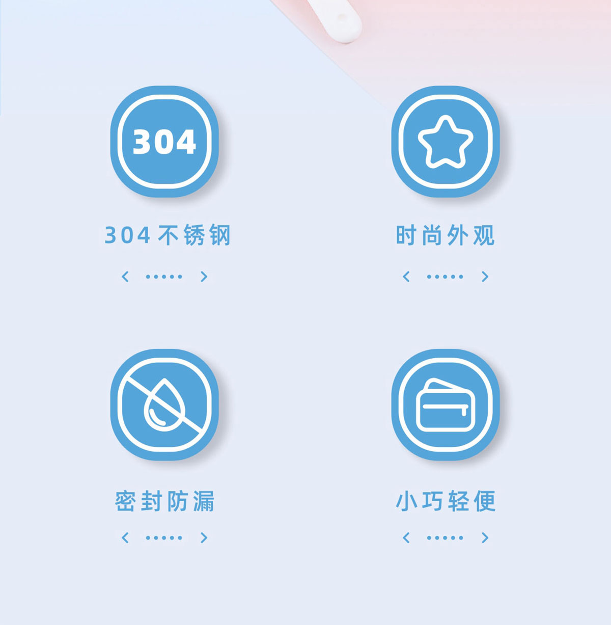 Stuff:不銹鋼款:PP+AS+ABS+304不銹鋼/OPP+彩盒,PP款:PP+AS+ABS/熱縮膜