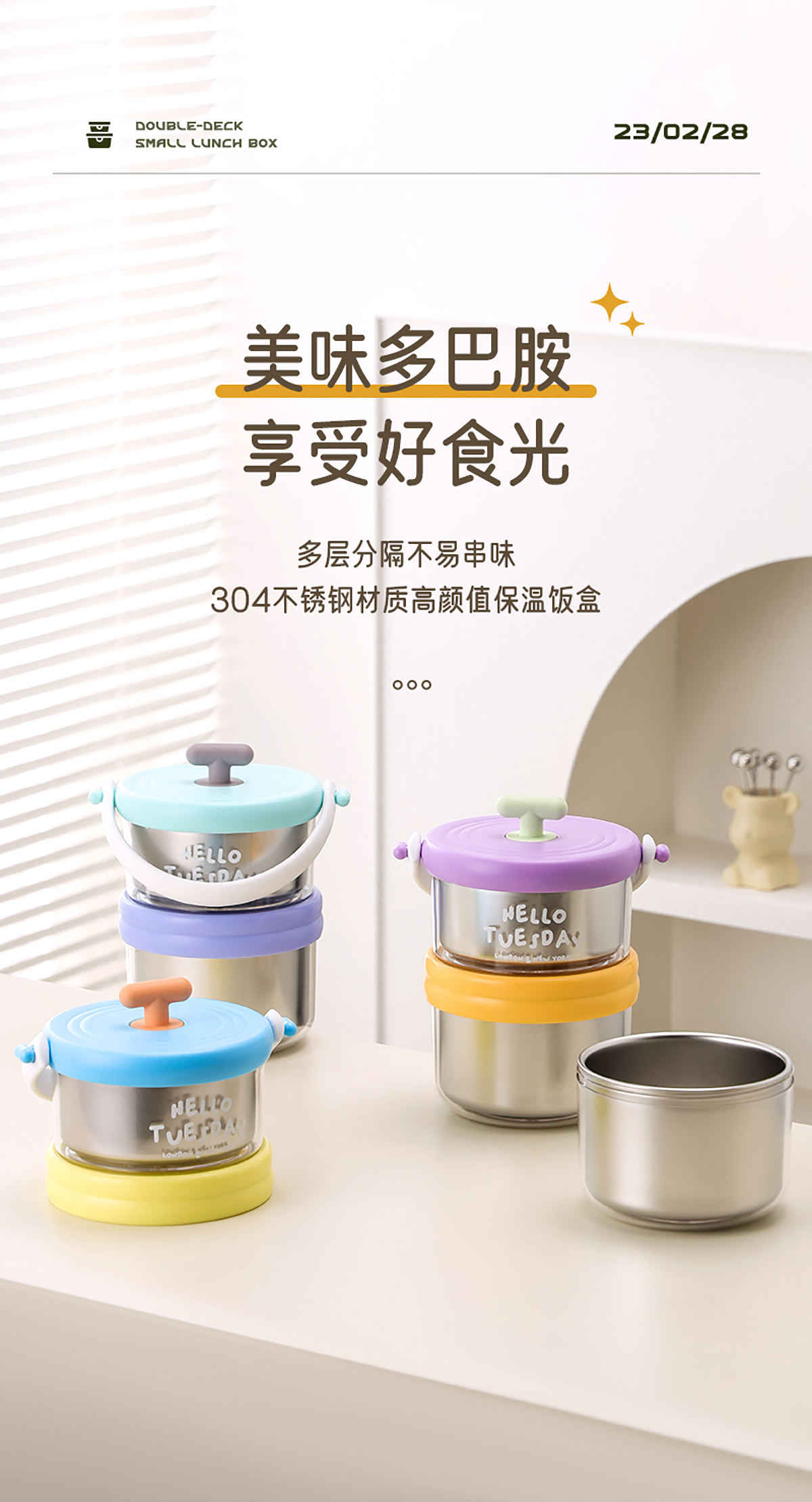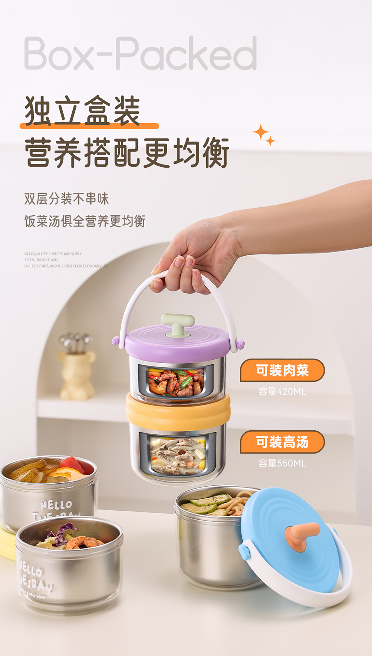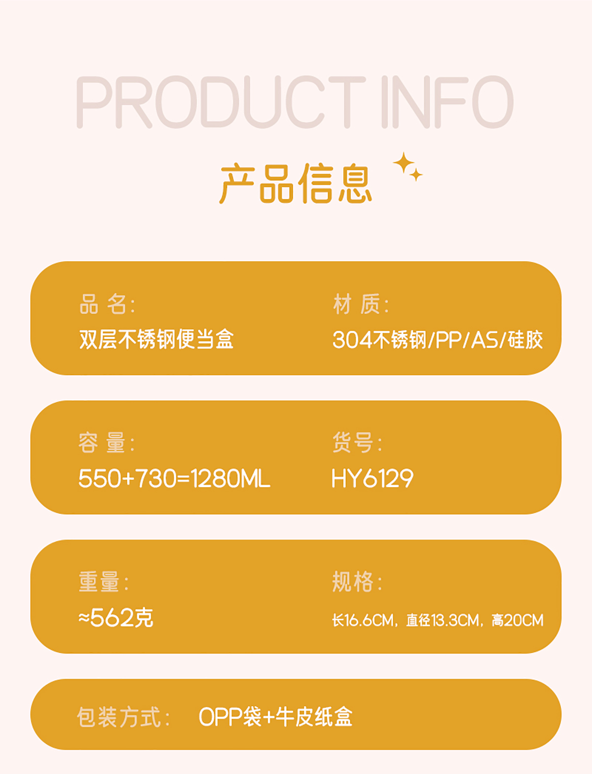 雙層不銹鋼便當(dāng)盒730+550=1280ml