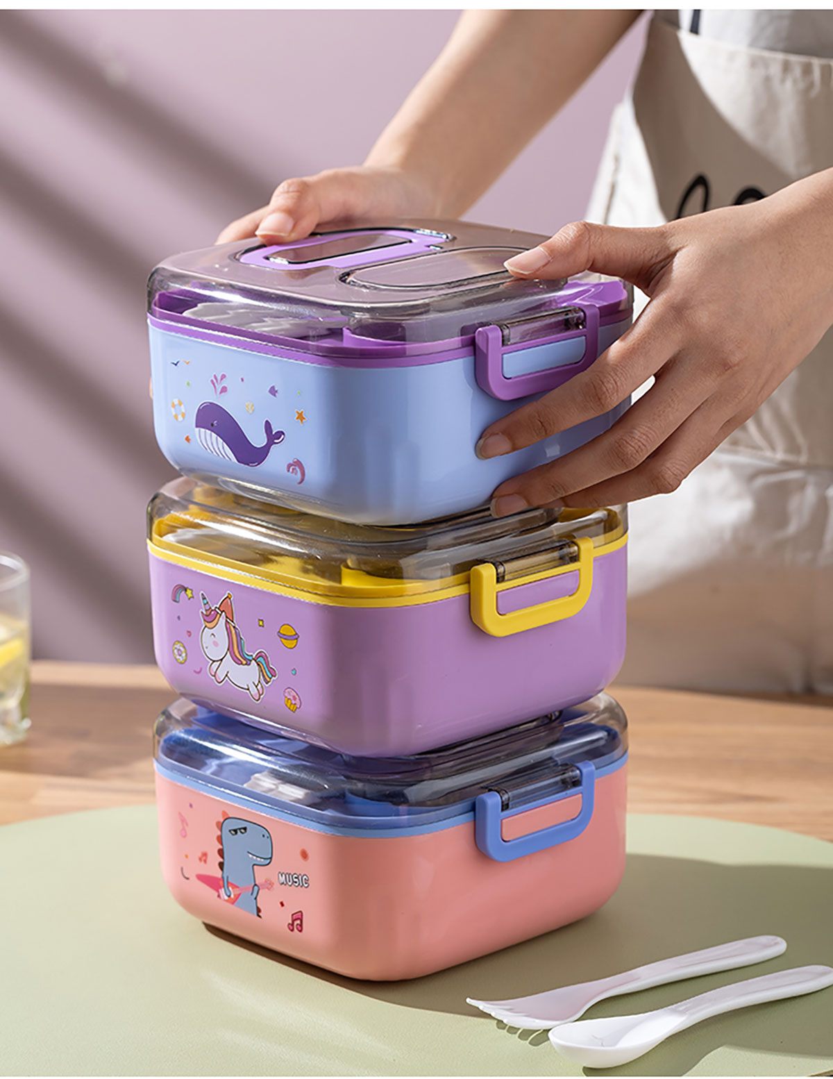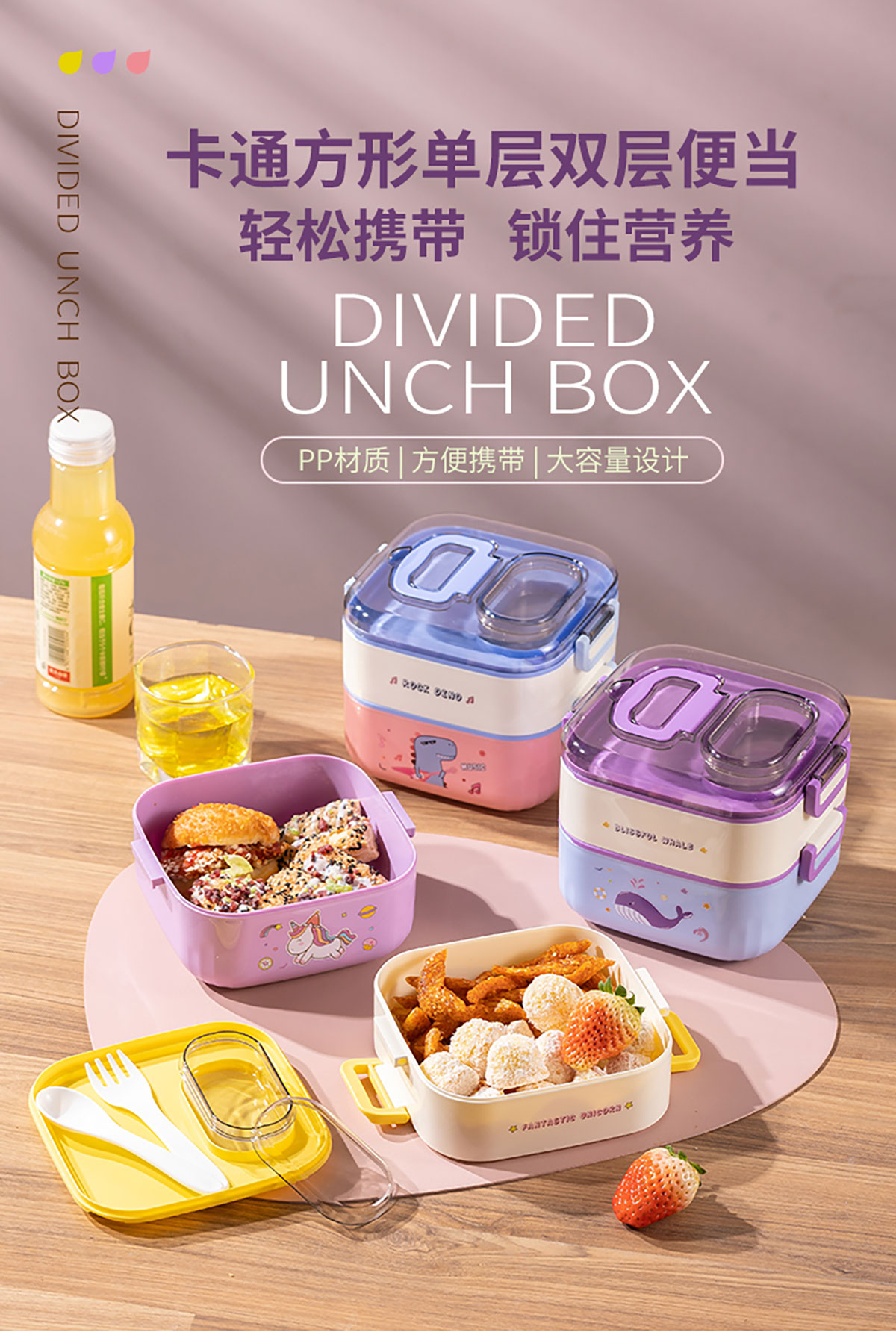 悅味塑料單層分格/單層/雙層方形飯盒850ml