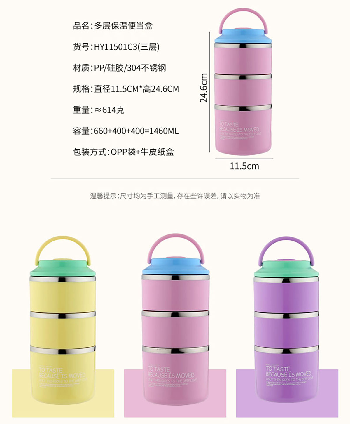 SWY-HY11501C3(三層):直徑115*高246mm/660+400+400=1460ml