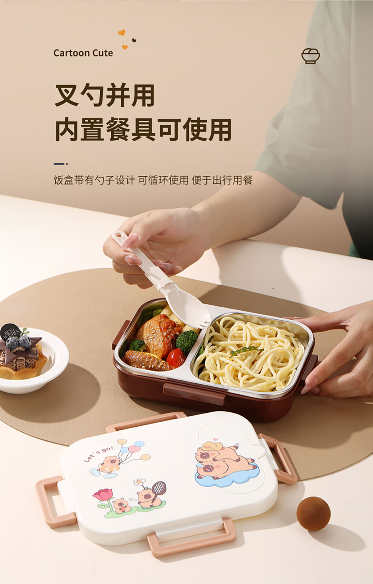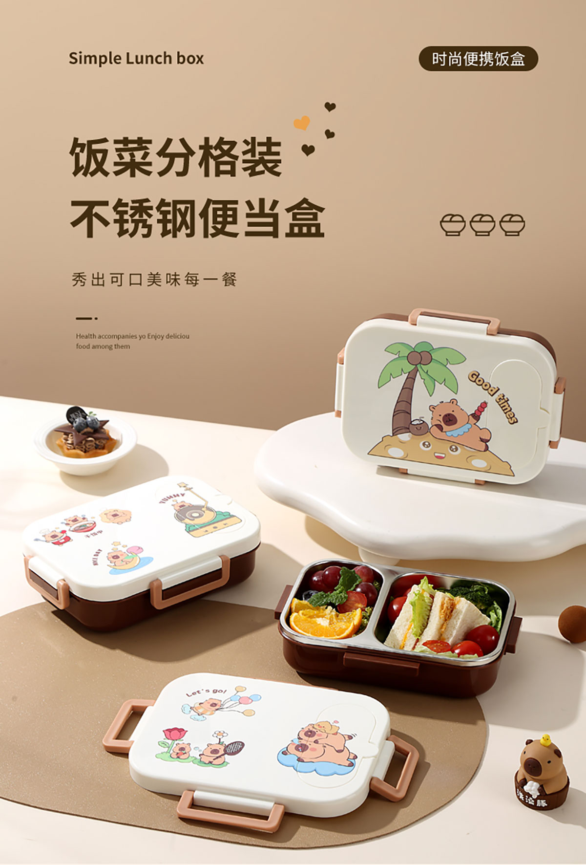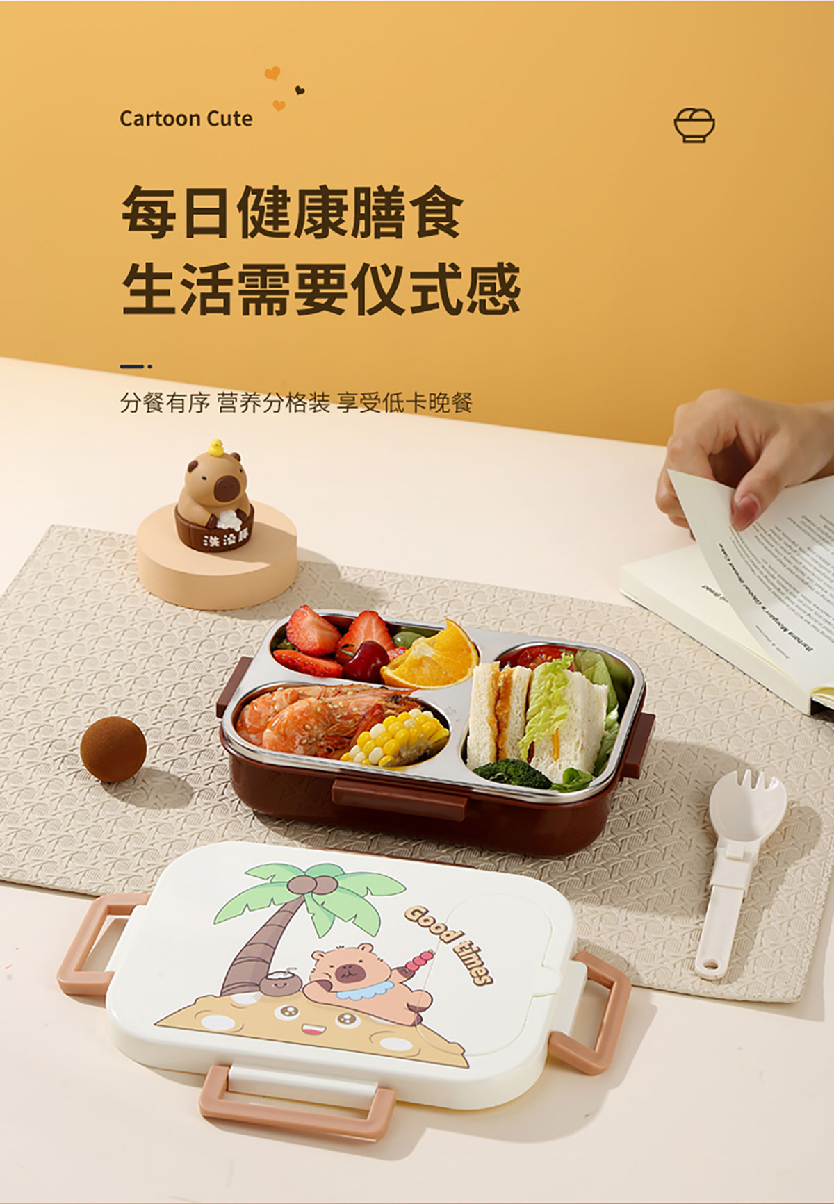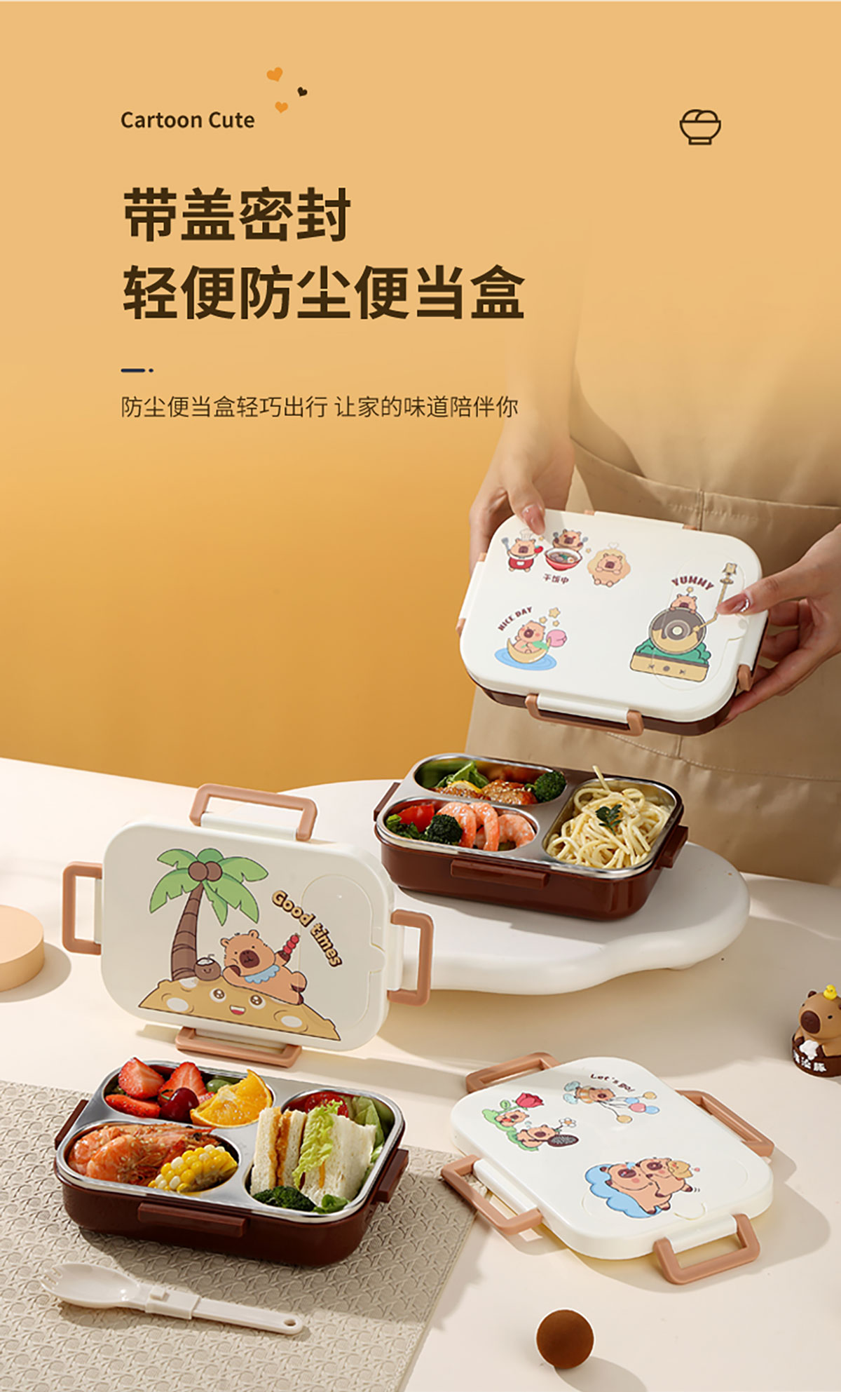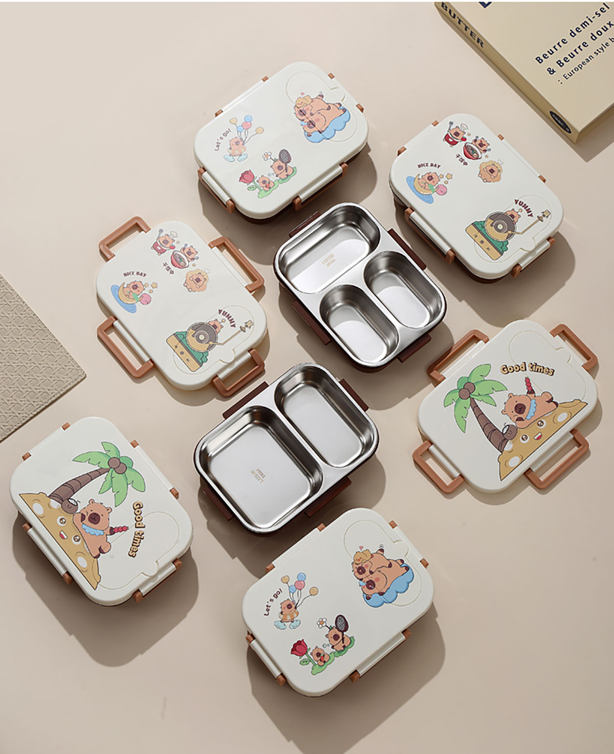 600ml UV獨(dú)立密封卡皮家族不銹鋼餐盒2格/3格 (配PP折疊湯勺)