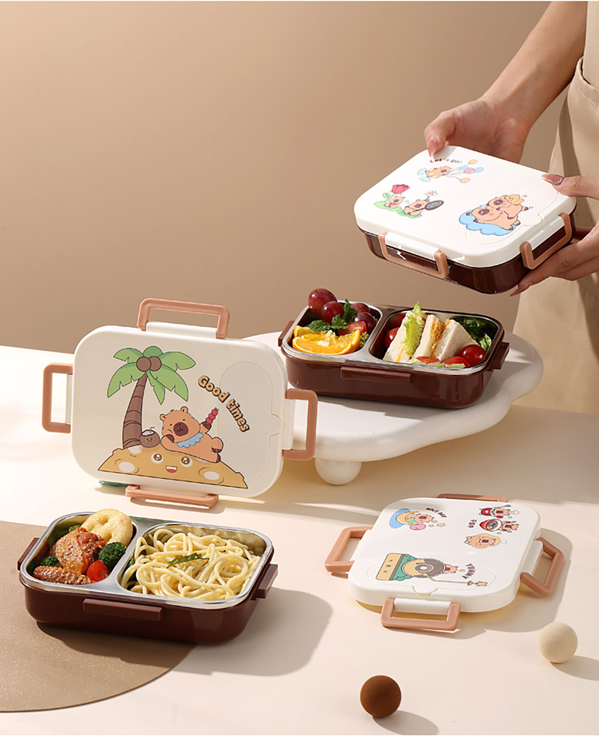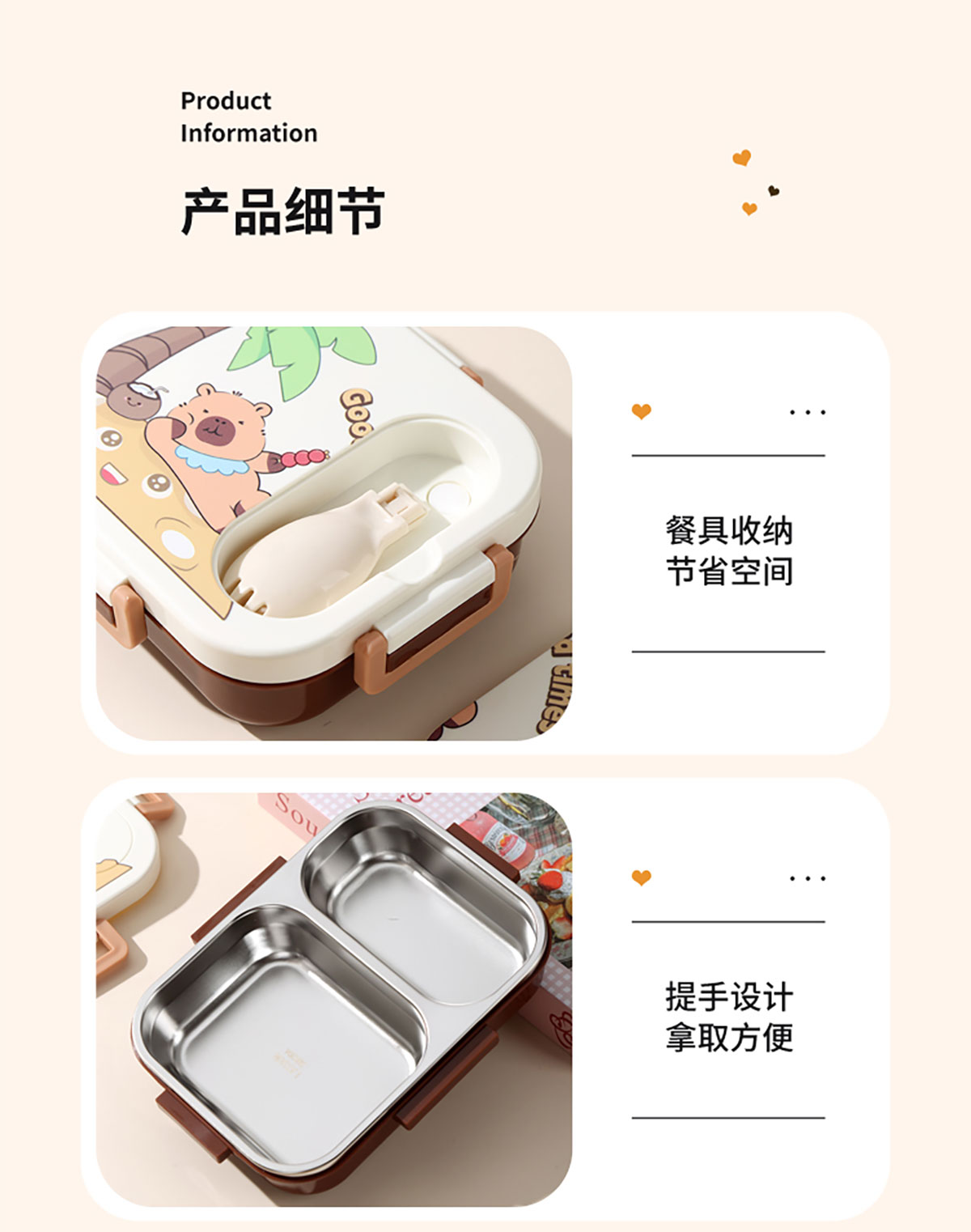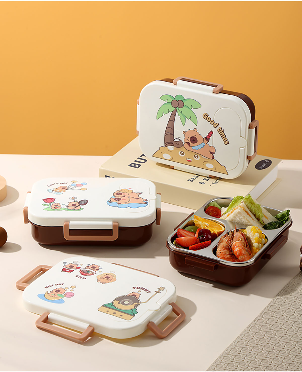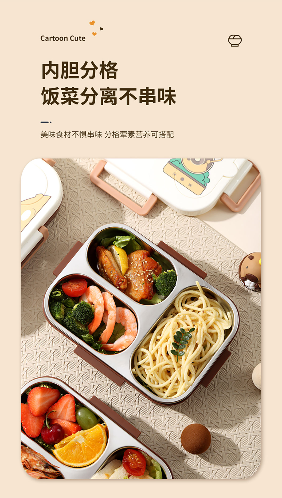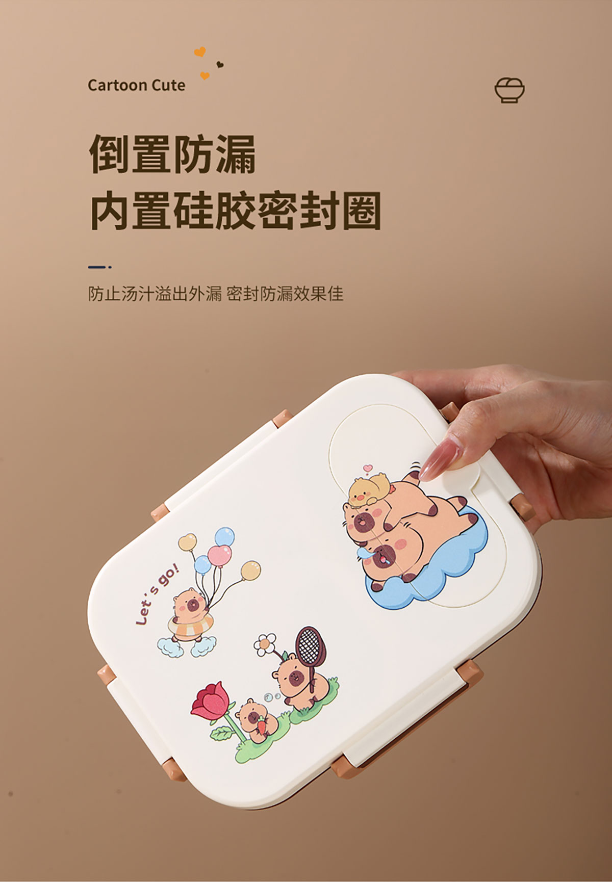 600ml UV獨(dú)立密封卡皮家族不銹鋼餐盒2格/3格 (配PP折疊湯勺)