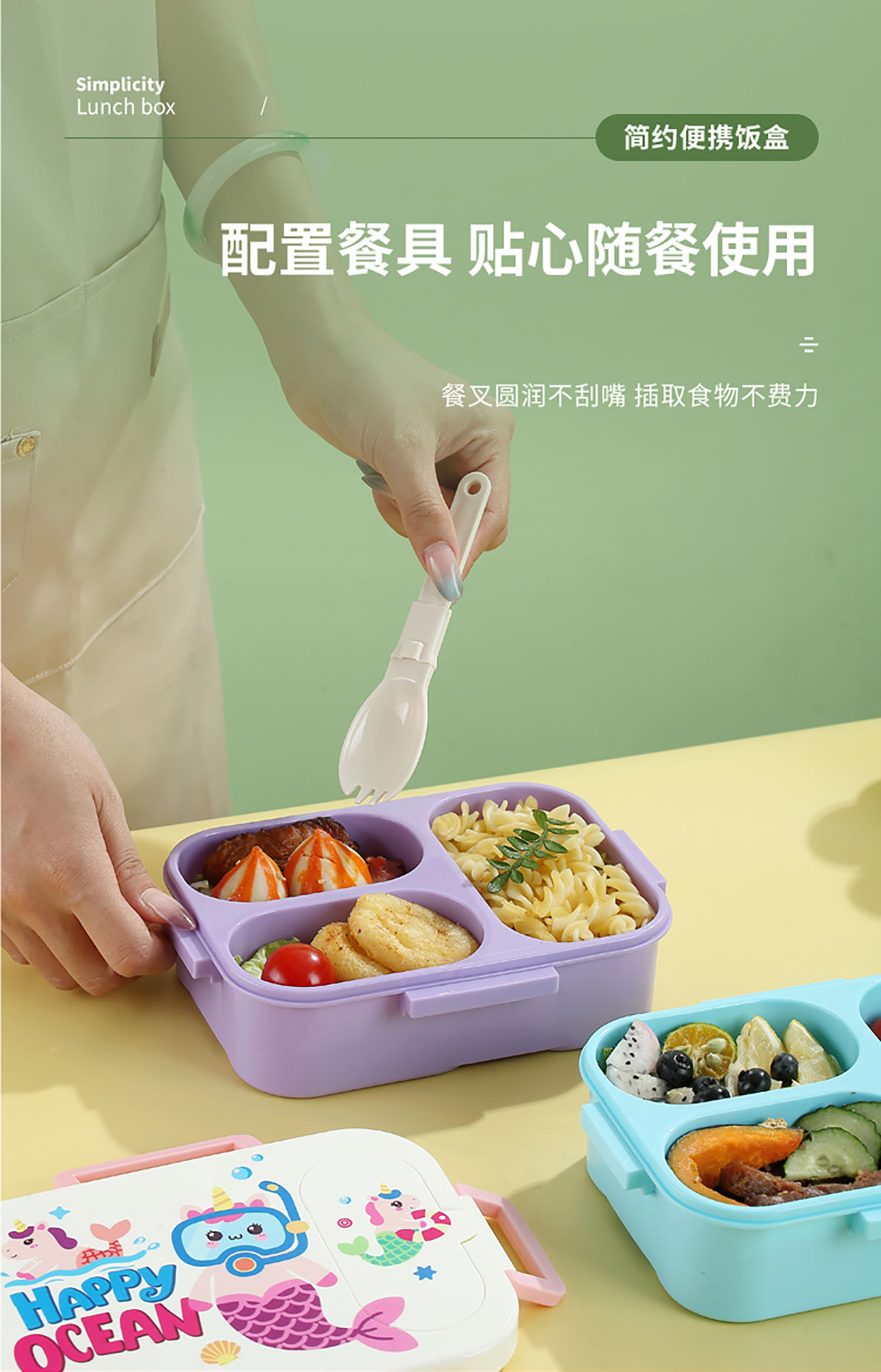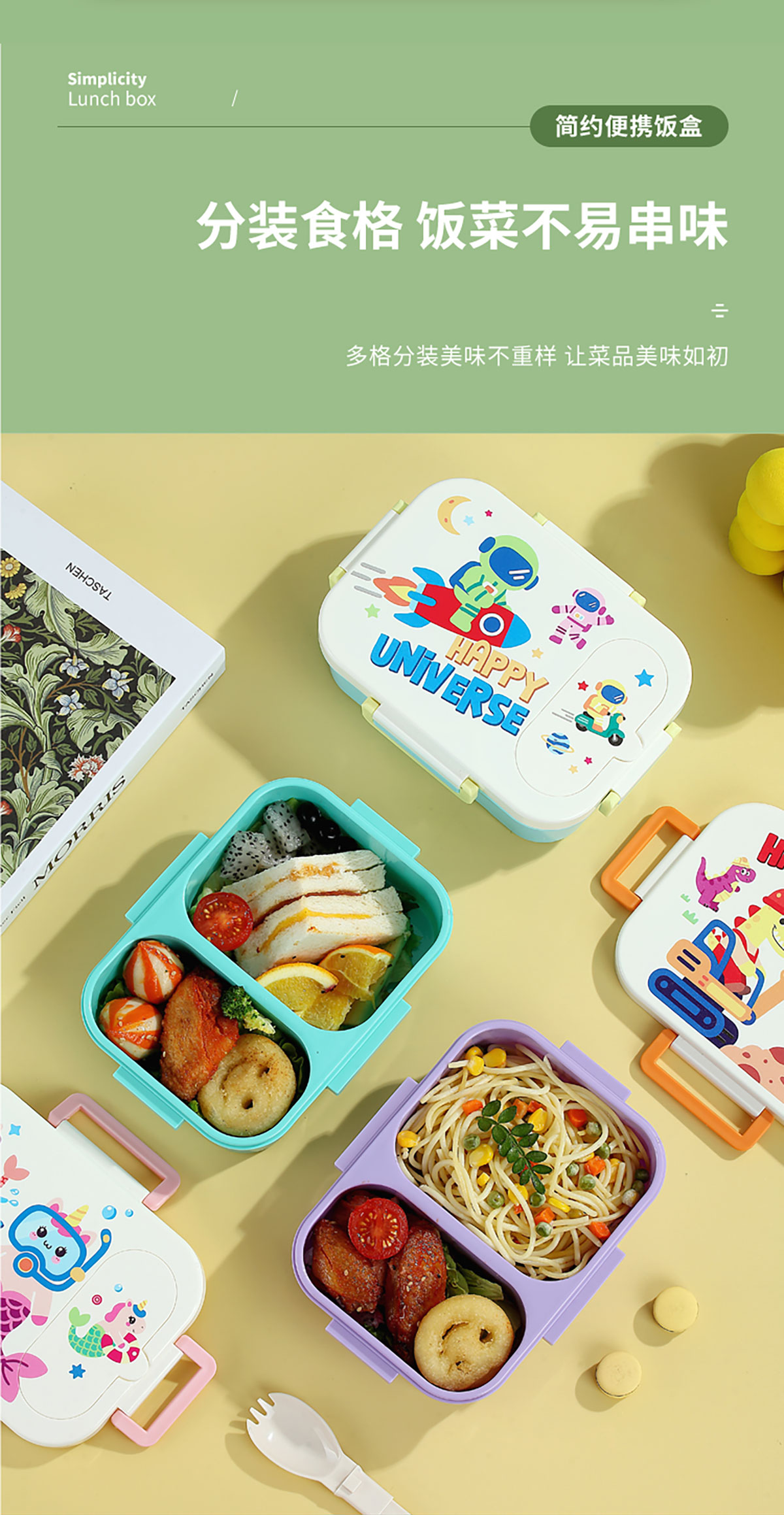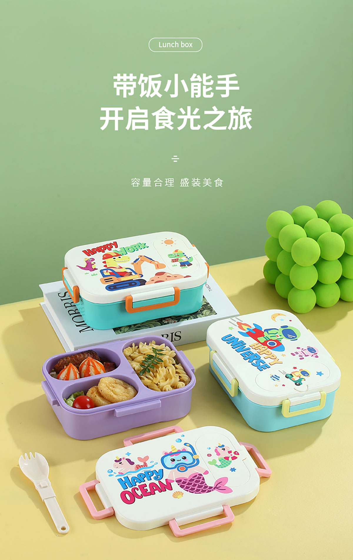 UV印獨立密封卡通塑料餐盒(2格900ml/3格850ml)