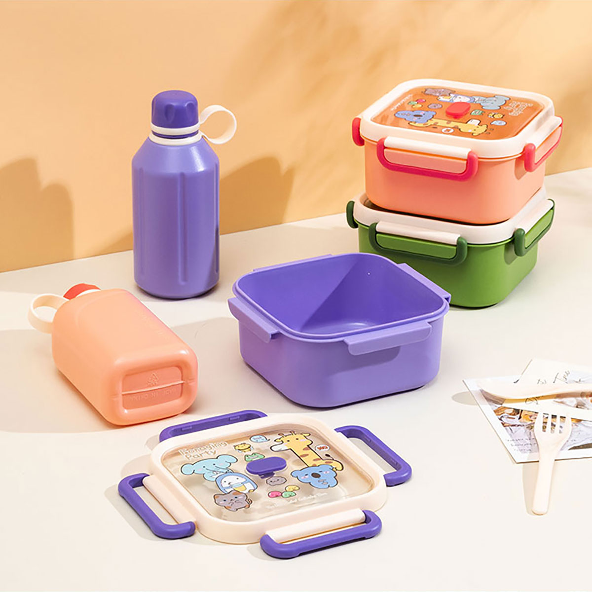 尚趣正方單層飯盒(1000ml)/+圓形/方形運動水壺(500ml)