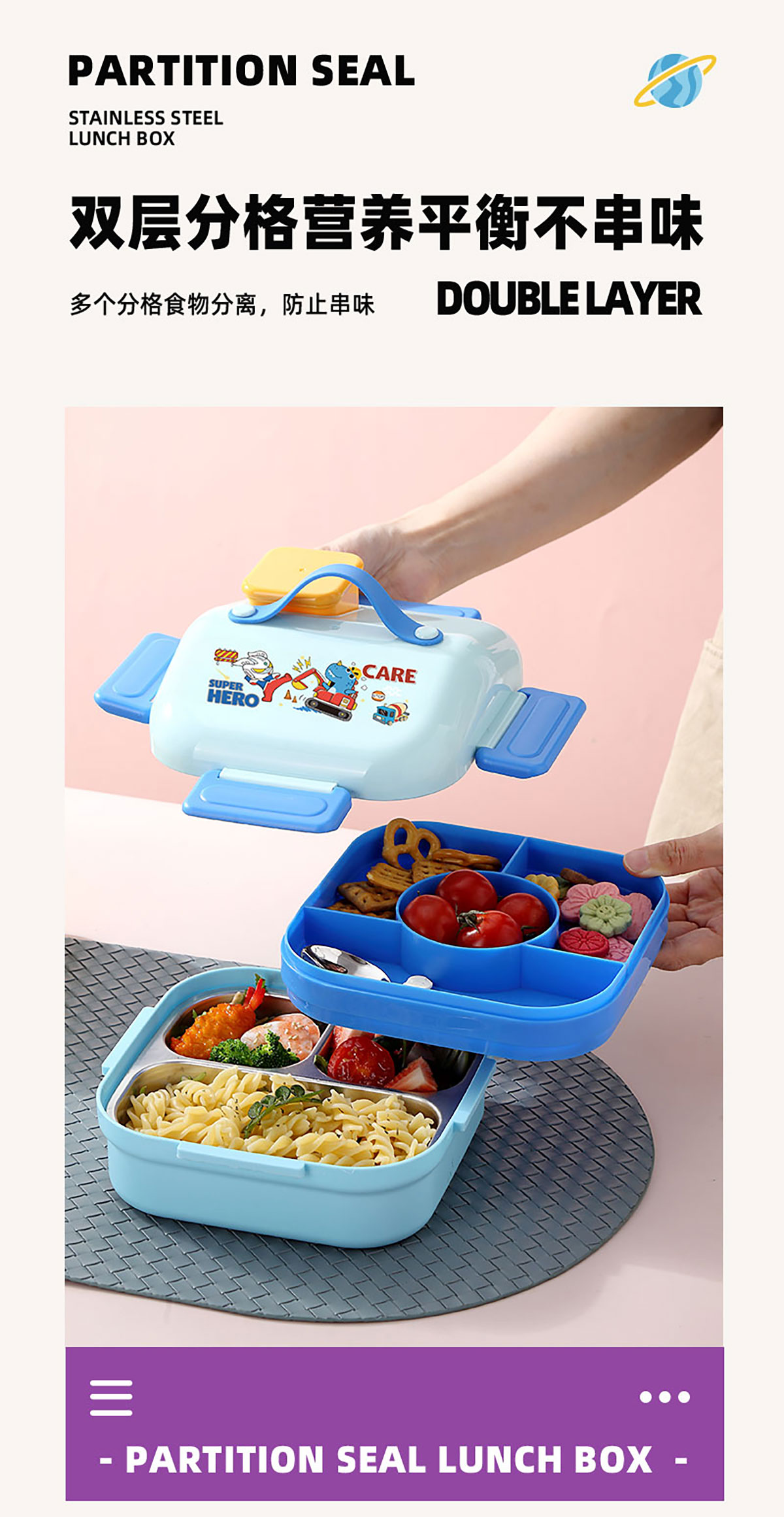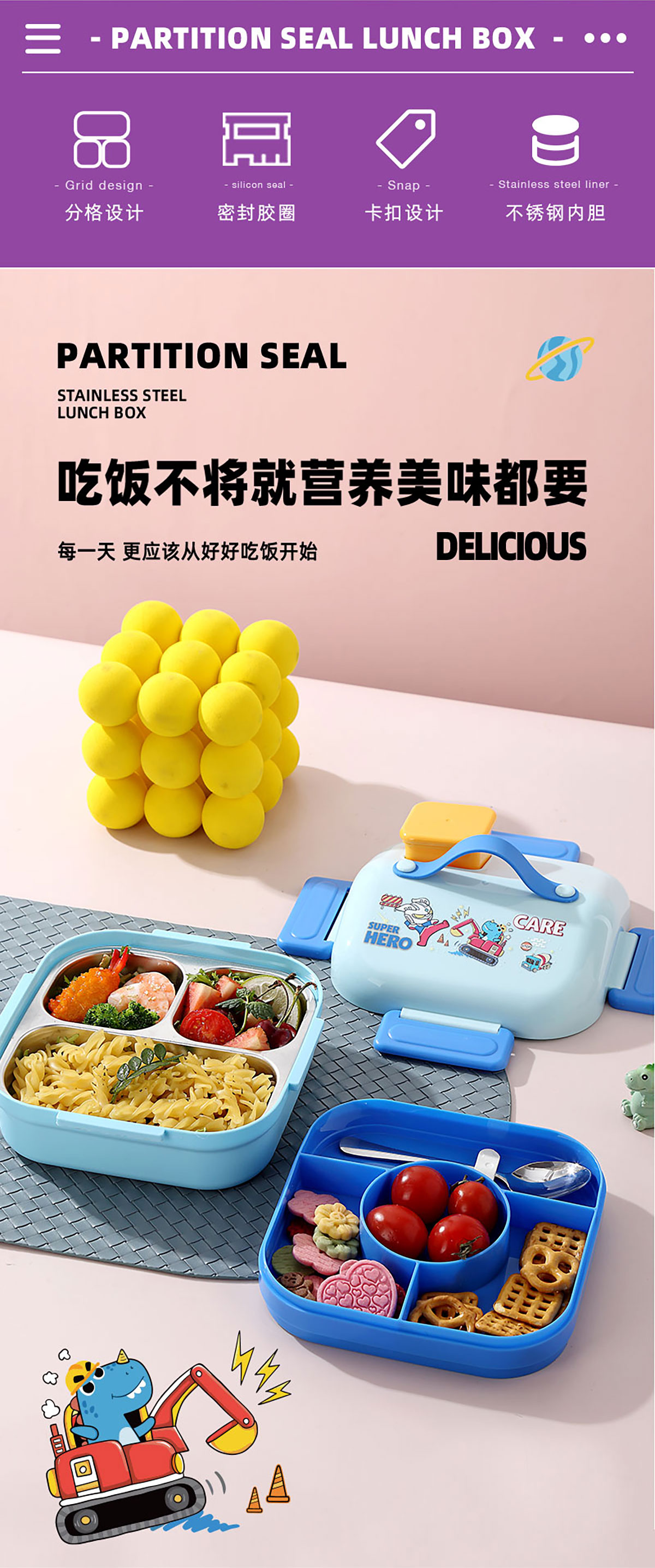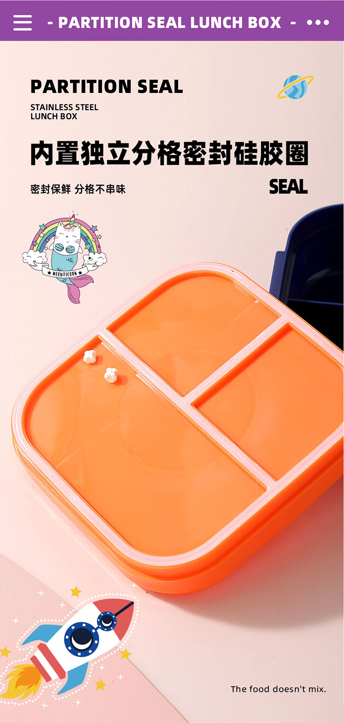 HOUSE房子不串味密封不銹鋼餐盒(方形3格700ml+碗70ml+不銹鋼勺)